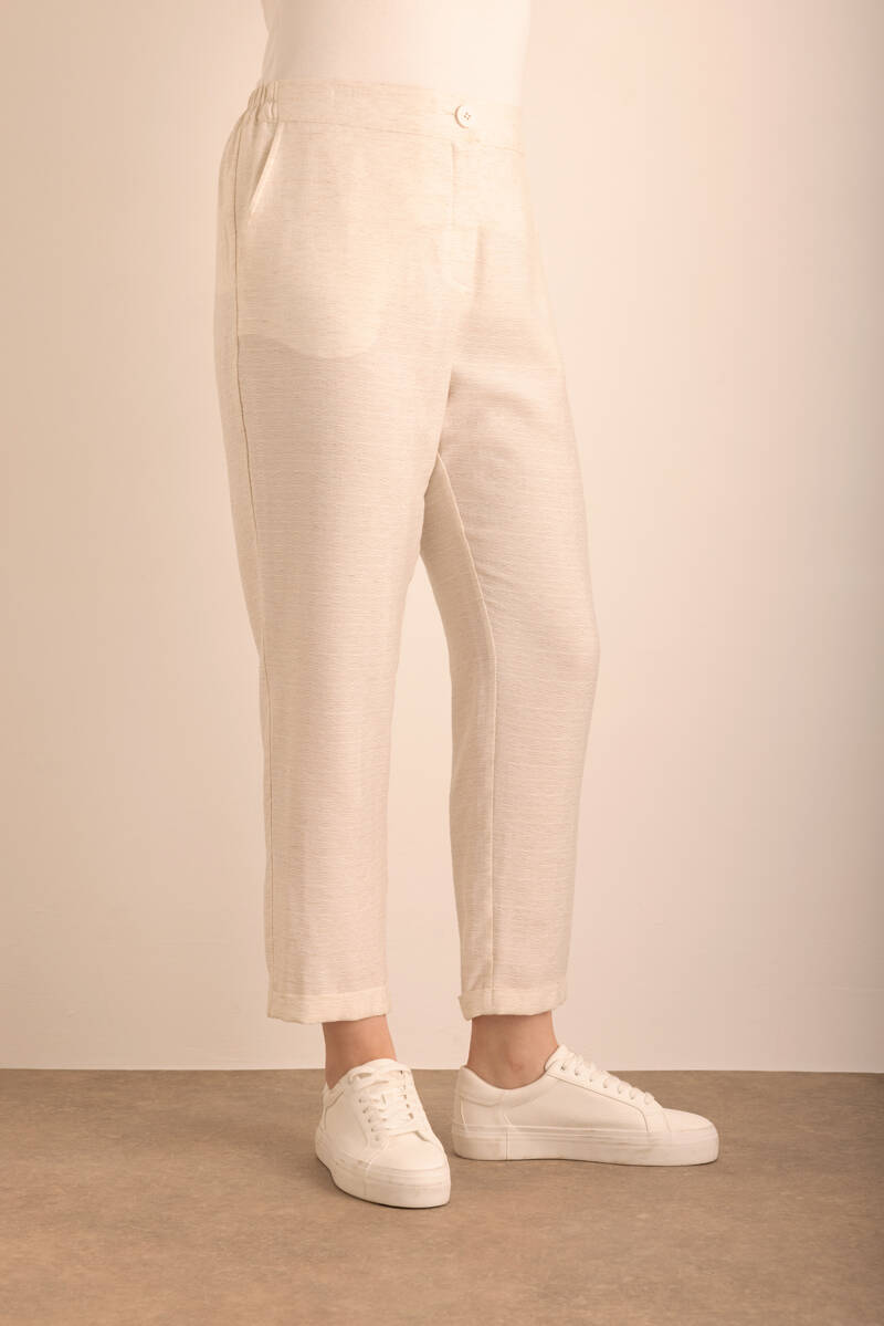 Kahverengi Beli Lastikli Dokuma Pantolon