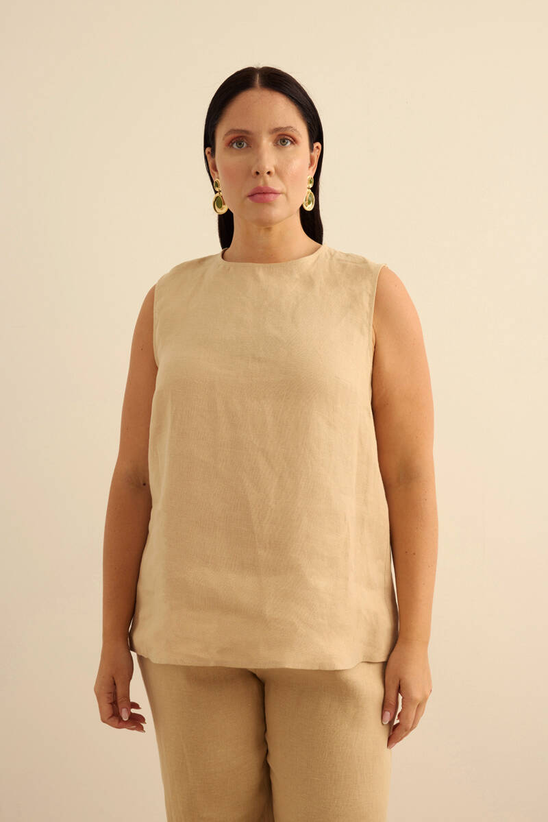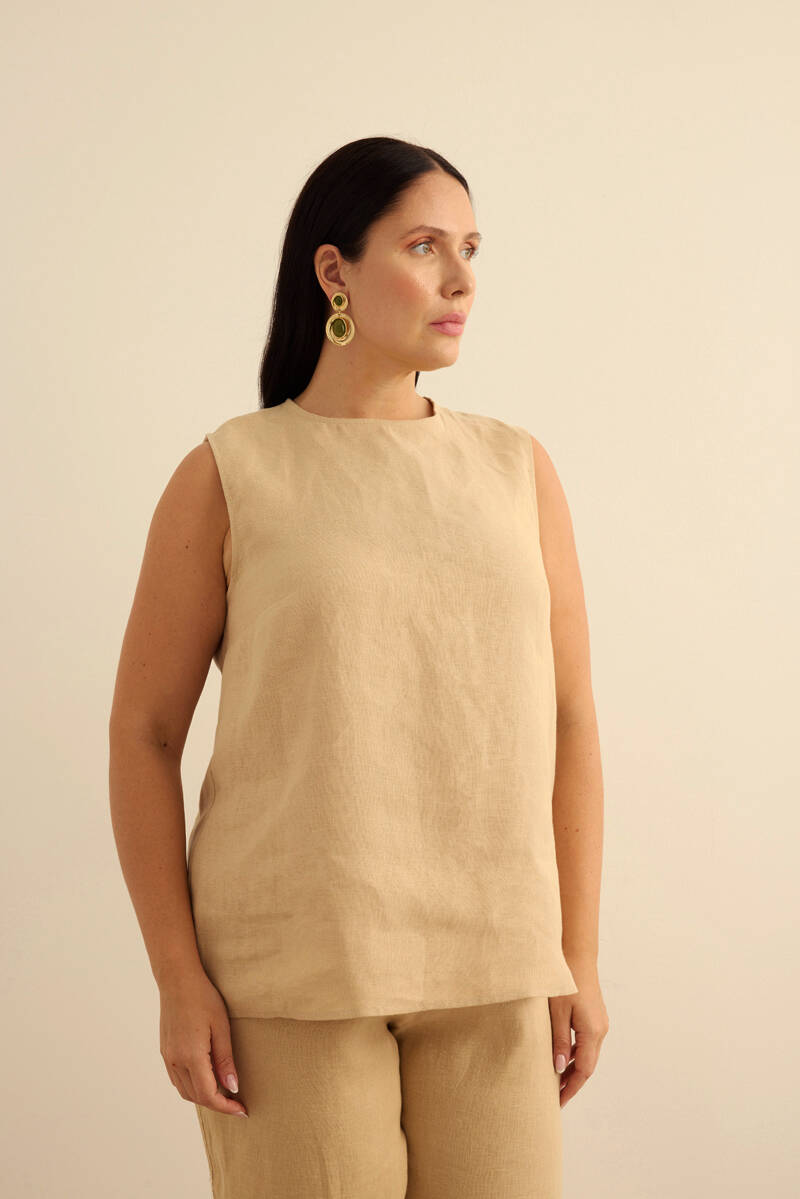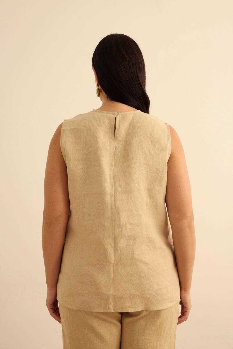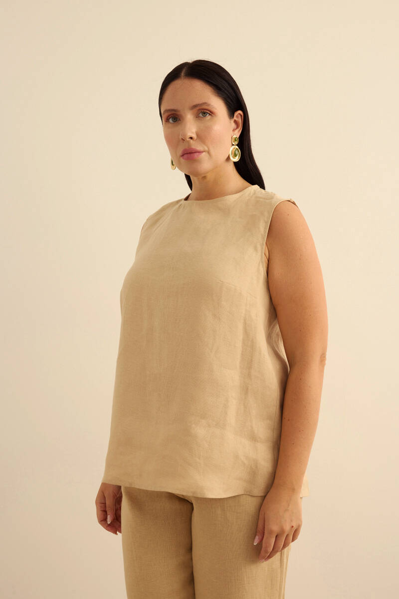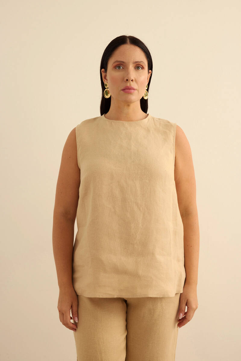 Taş Keten Kolsuz Bluz