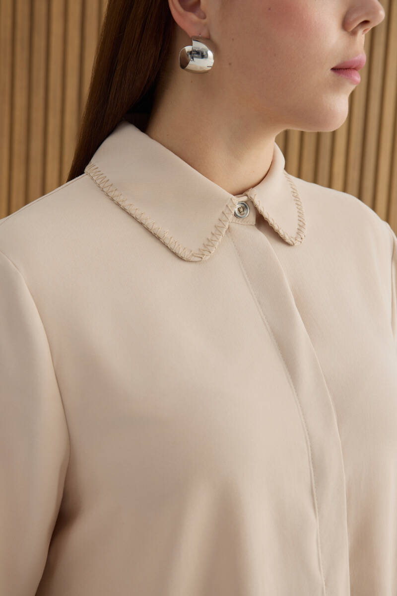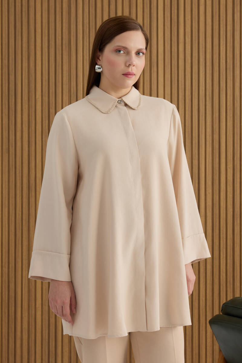 İndigo Yakası Fermuarlı Keten Tencel Tunik