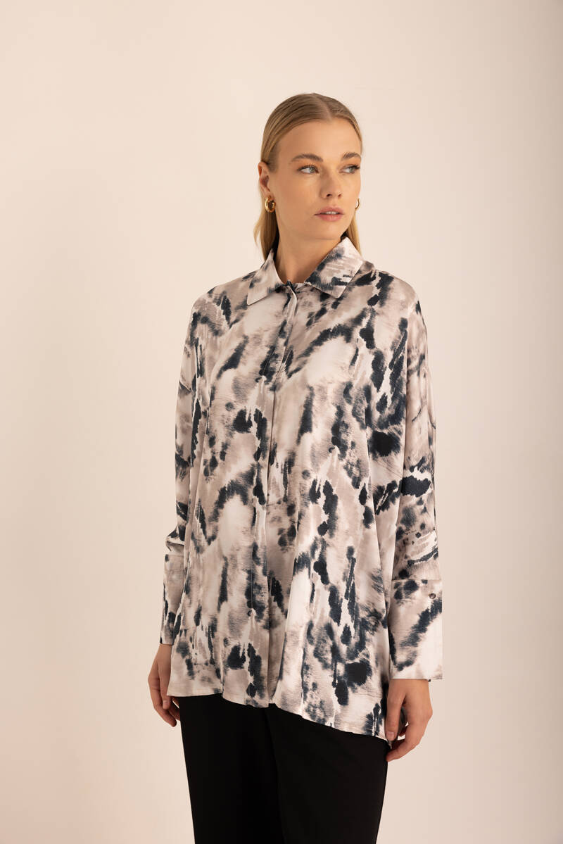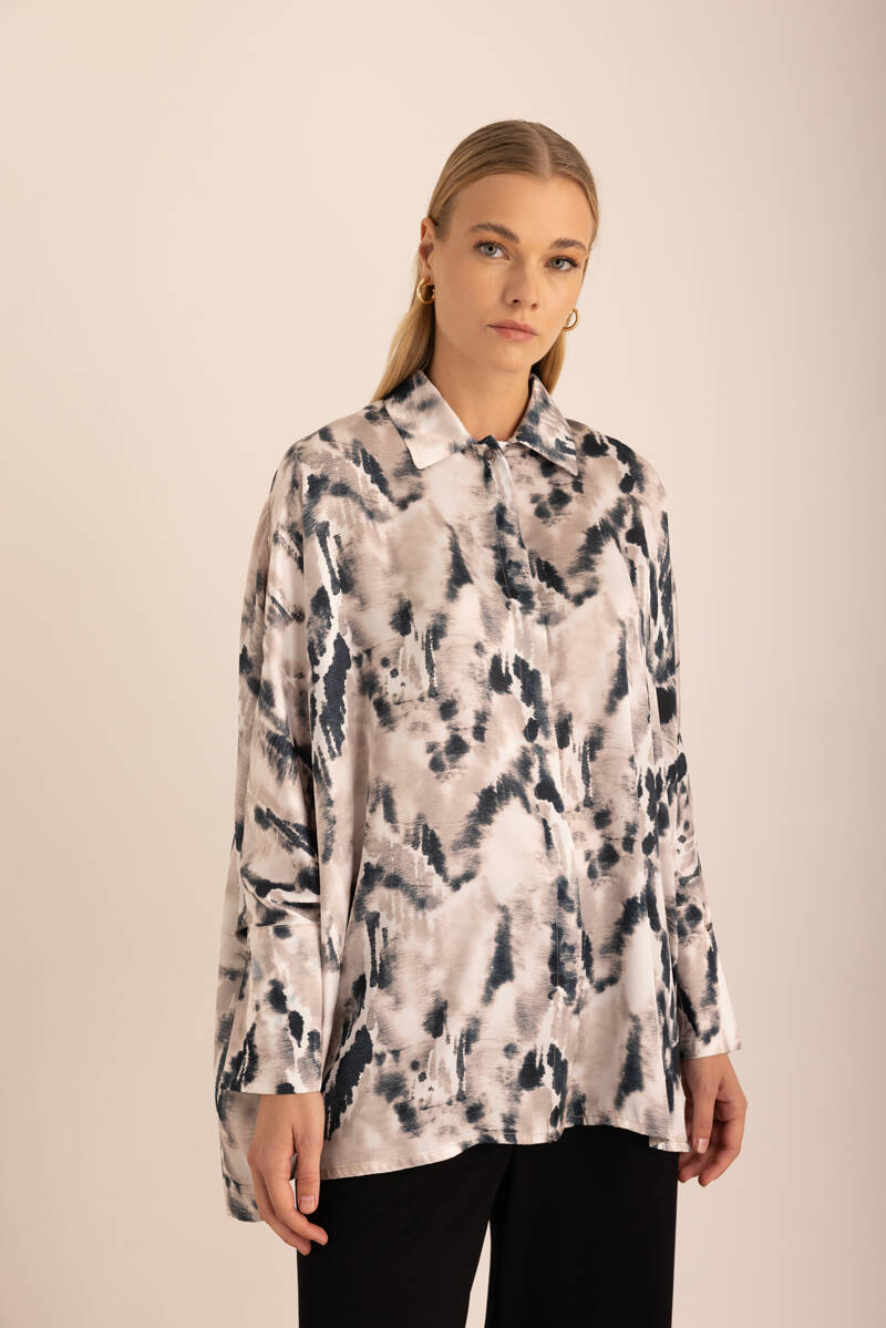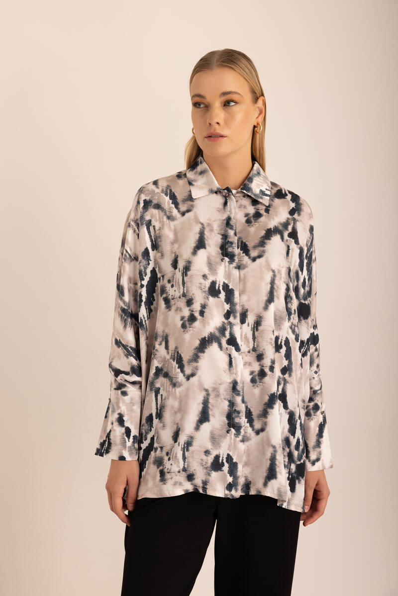 Saks Ön Göğüs Kısmı Pile ve Parça Detaylı Bluz