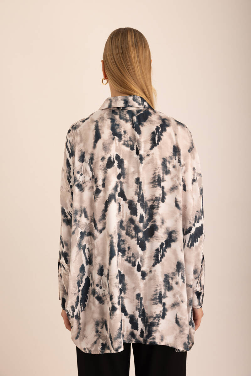 Lacivert Yandan Pili ve İşleme Detaylı Dokuma Bluz
