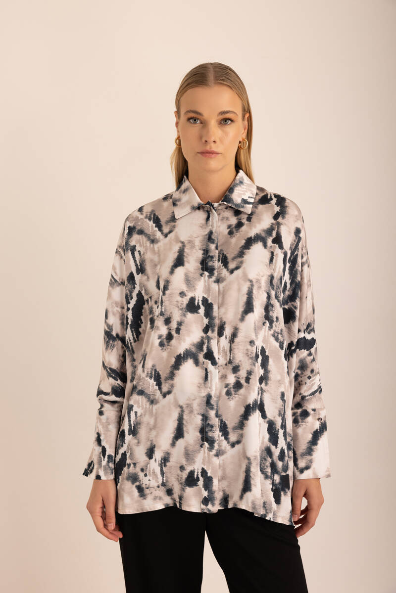 Saks Ön Göğüs Kısmı Pile ve Parça Detaylı Bluz