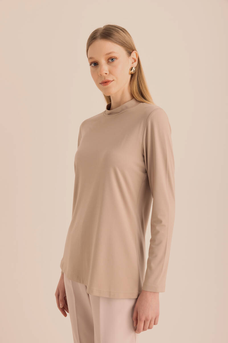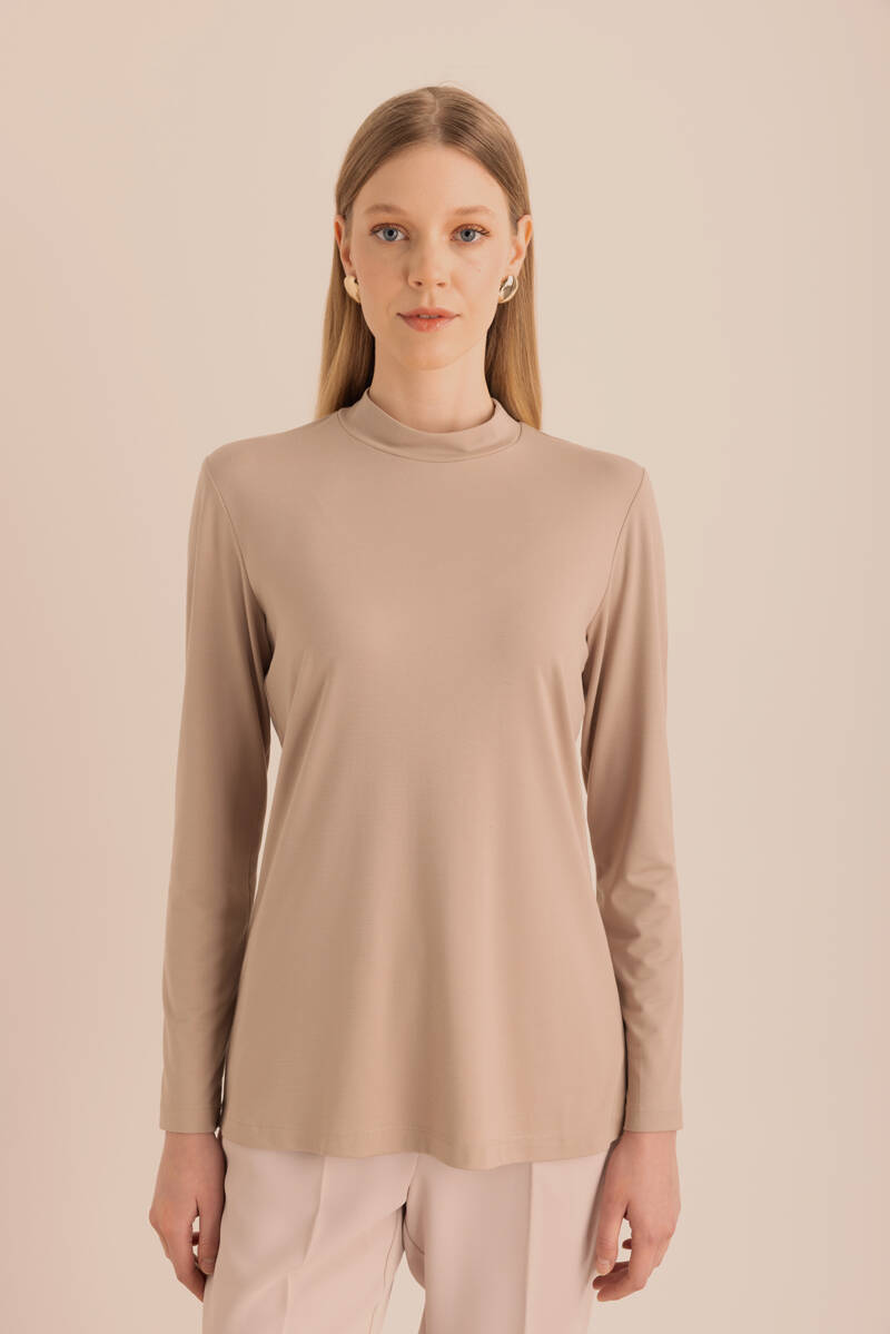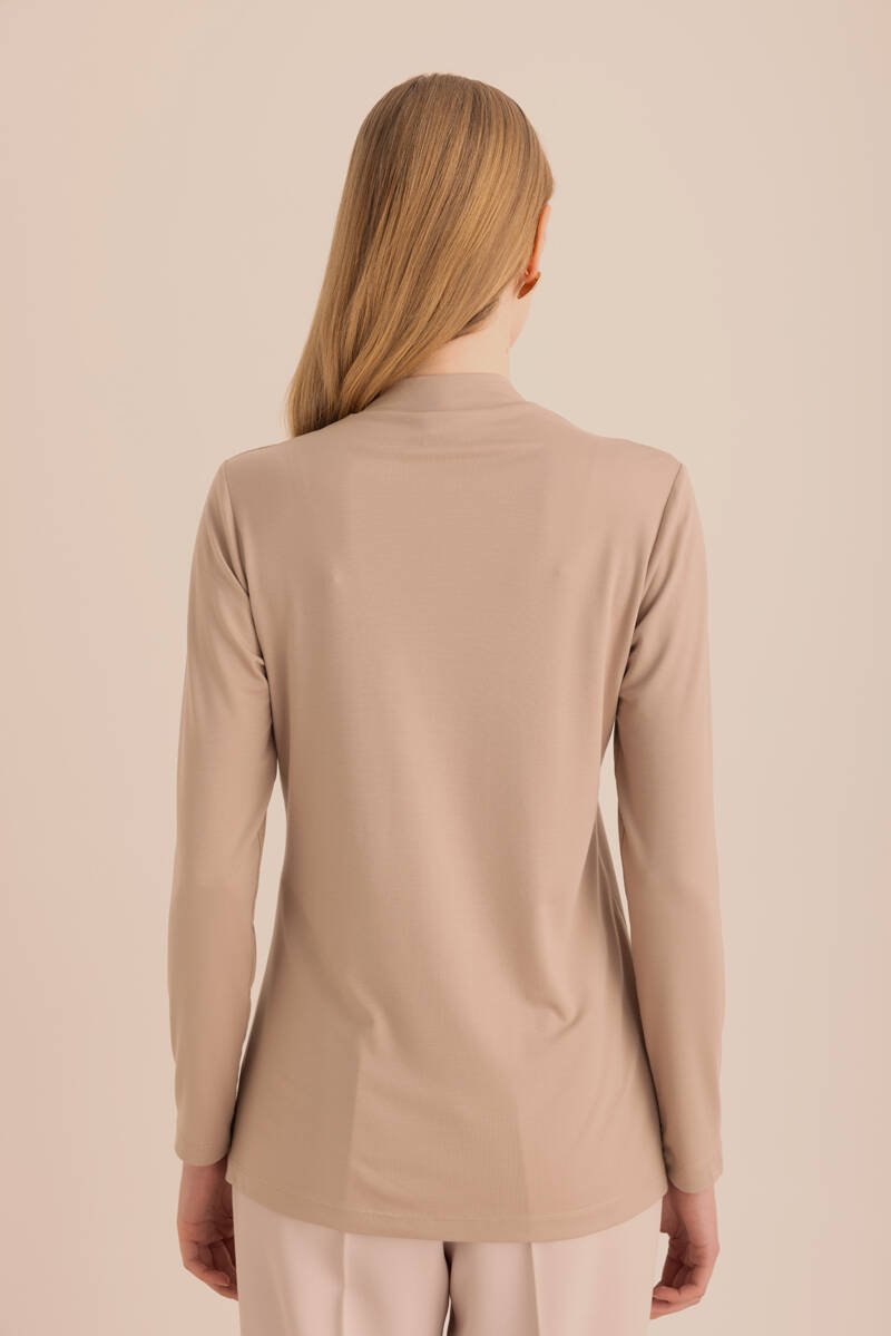 Ekru Kol Ucu Dikiş Detaylı Viscon Tunik
