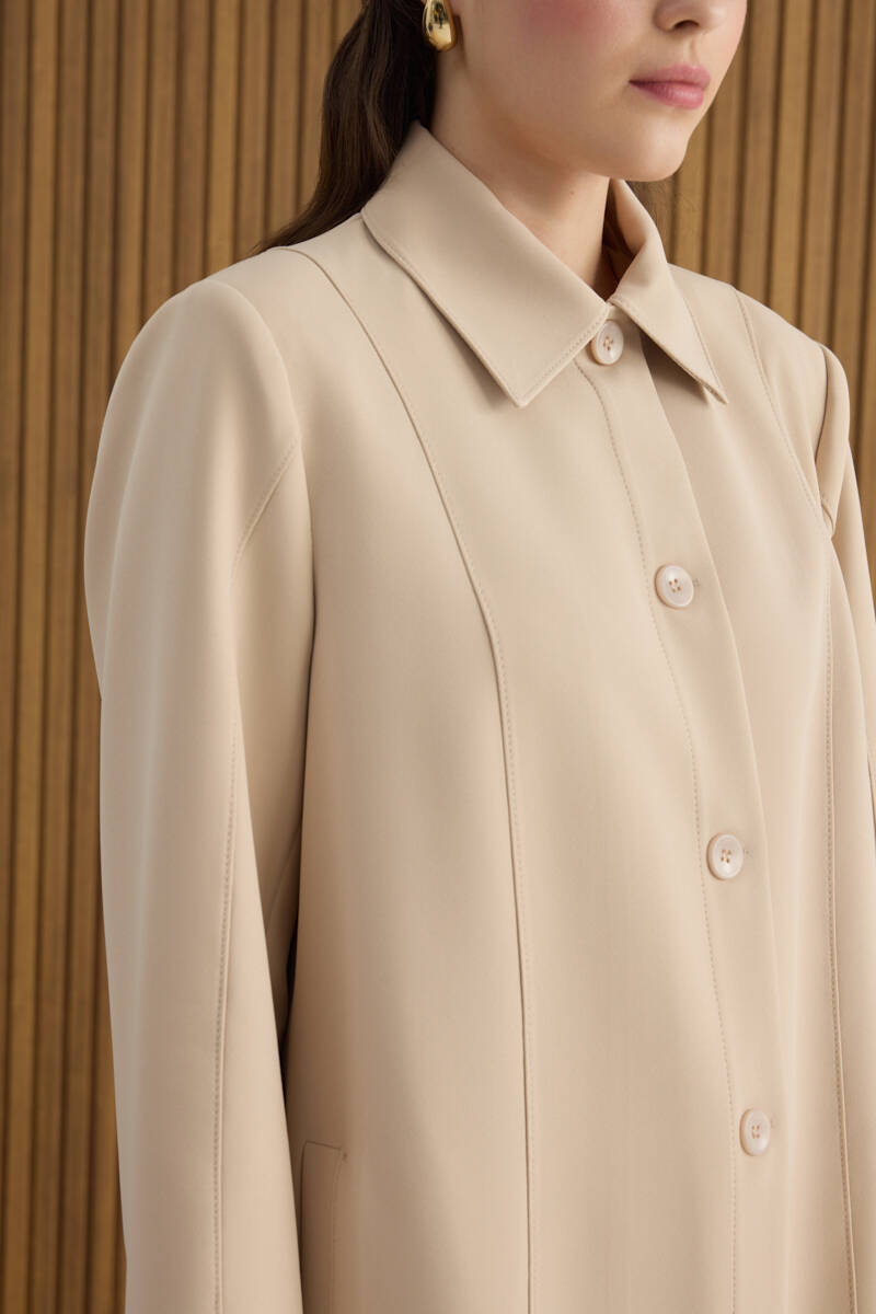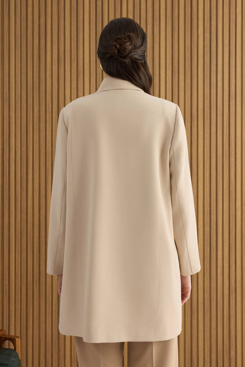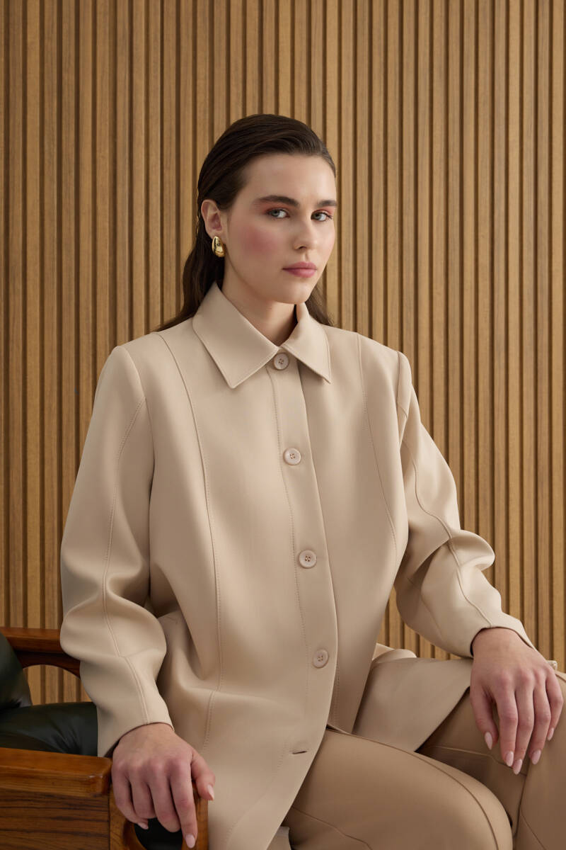 Ekru Yaprak Desenli Keten Yandan Bağlamalı Kimono