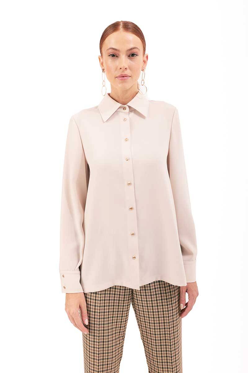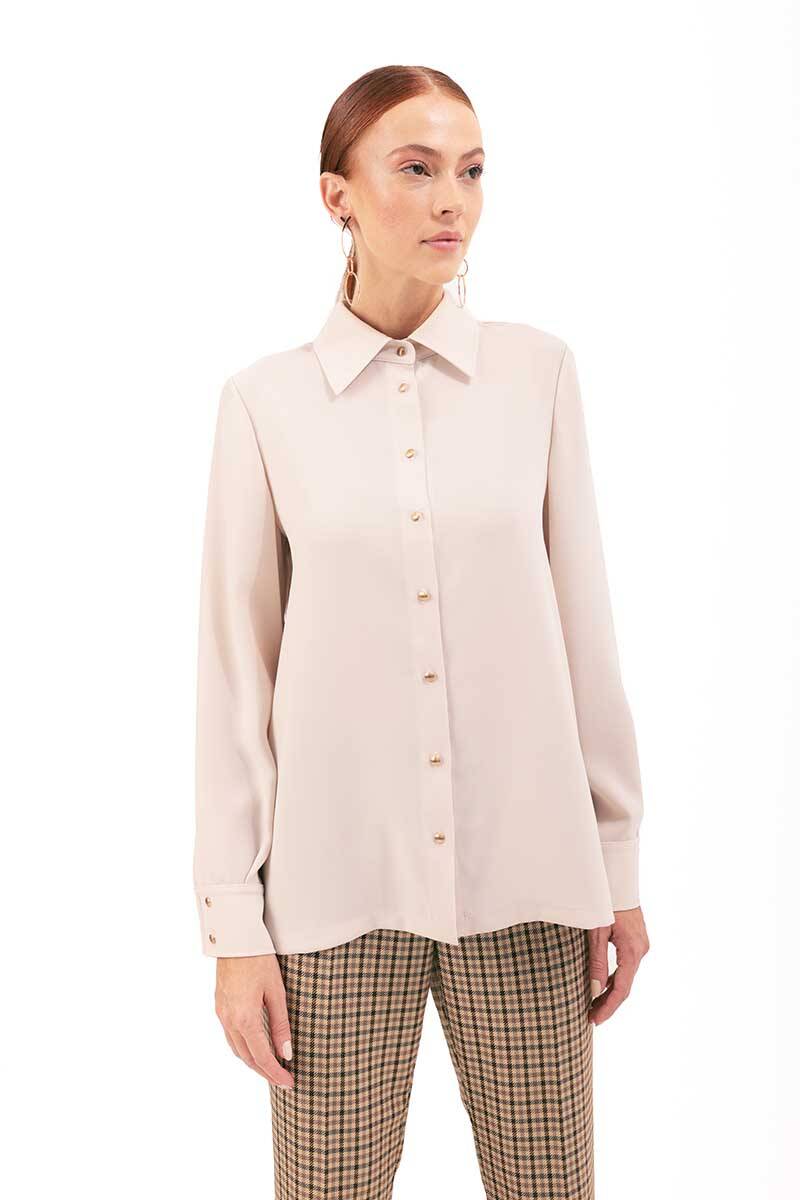 Antrasit Yaka İşlemeli Çizgili Bluz