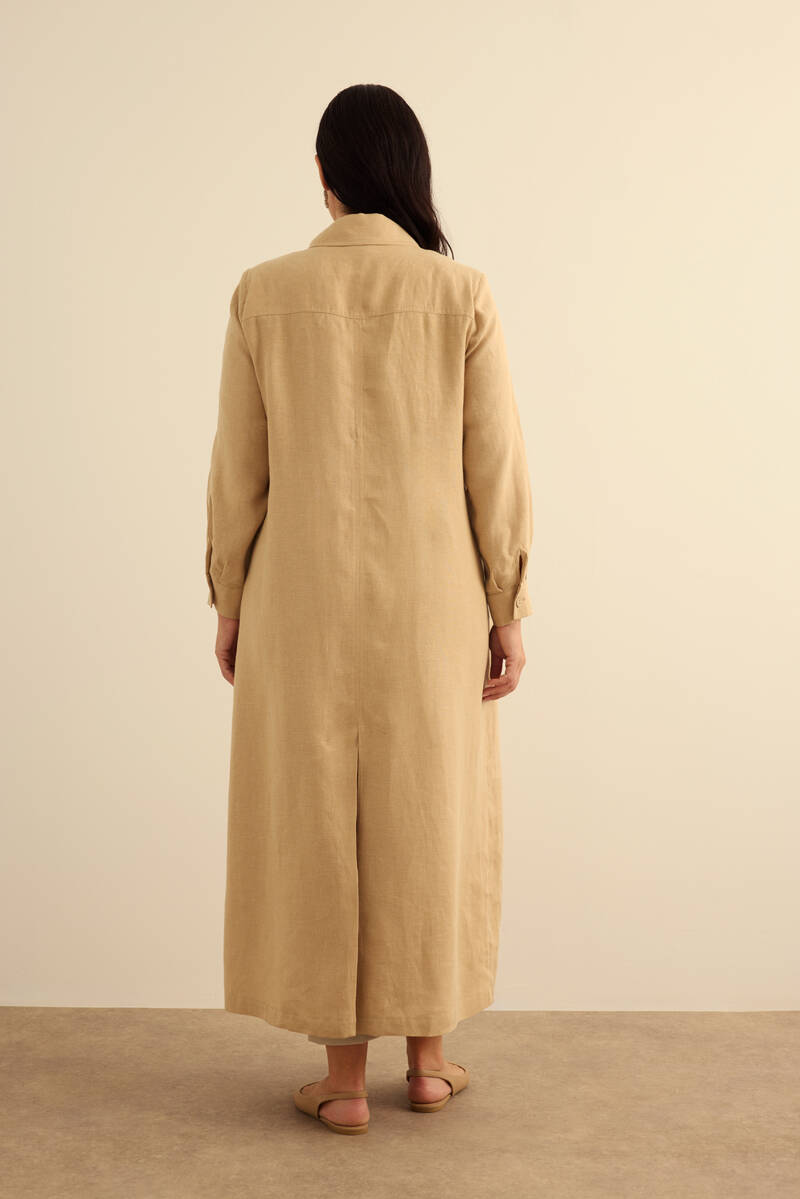 Haki Fermuarlı Keten Ferace