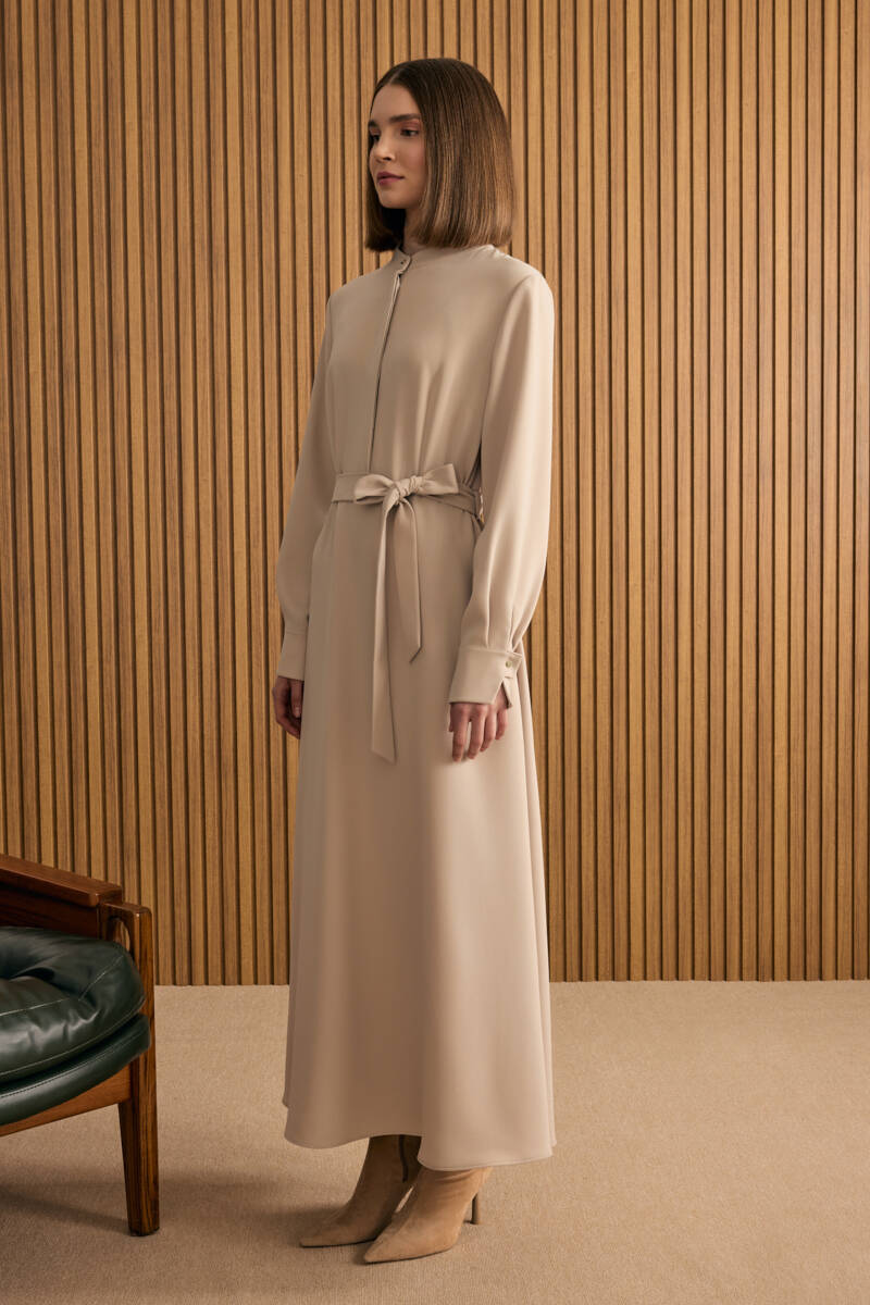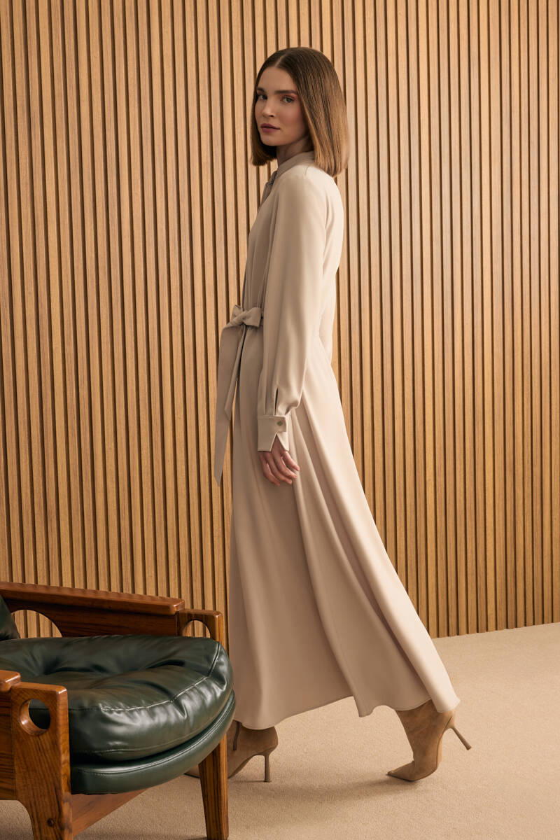 Ekru Kumaşı Püskül Yüzeyli Cotton Gömlek Elbise