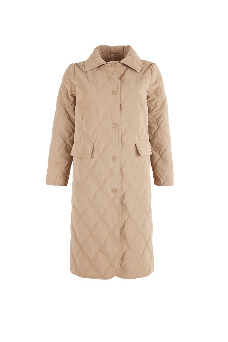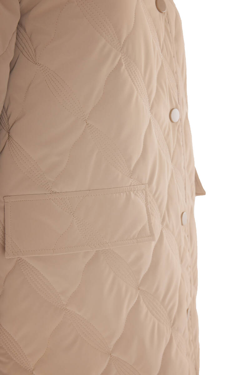 Bej 5829111 Yaka Detaylı Kapitone Kısa Mont