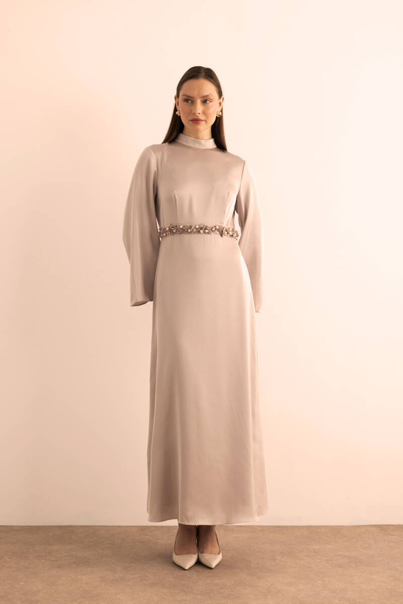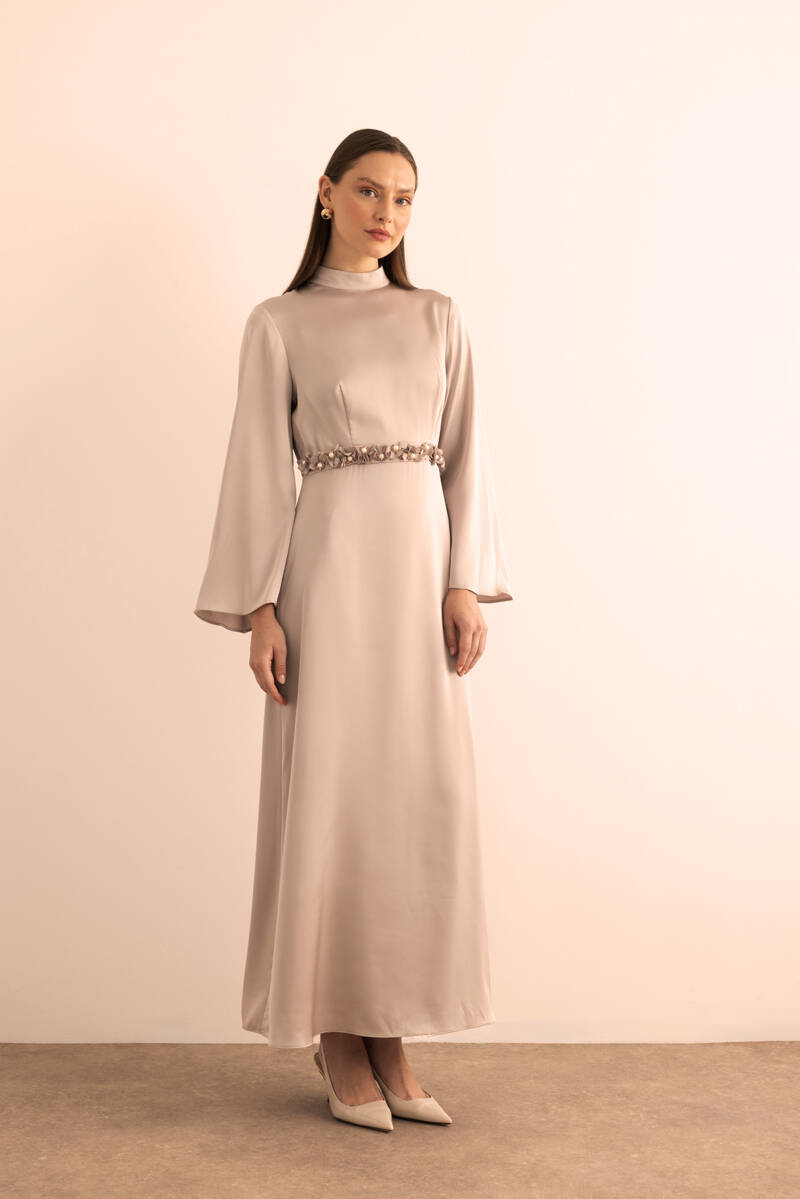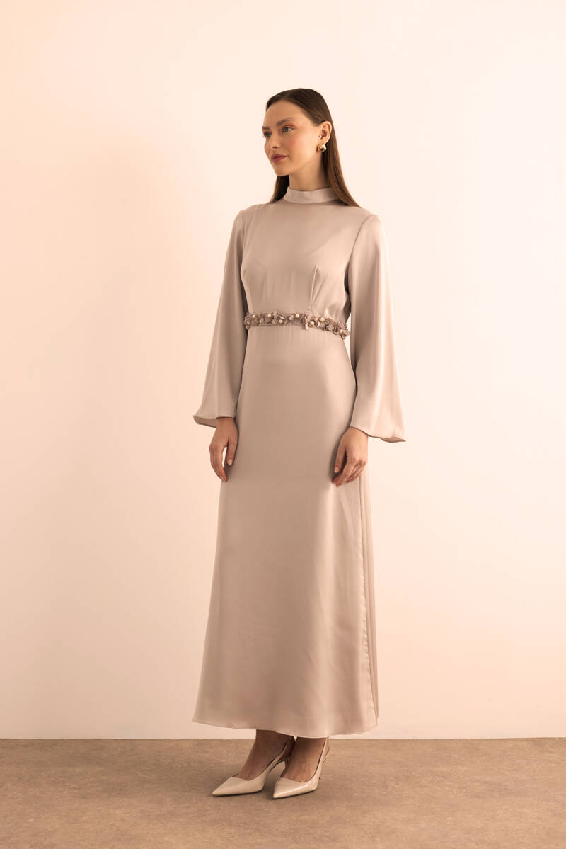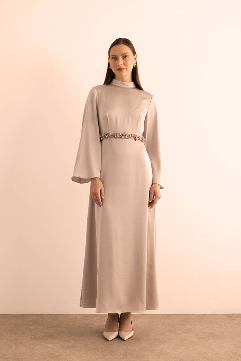 Ekru Kumaşı Püskül Yüzeyli Cotton Gömlek Elbise