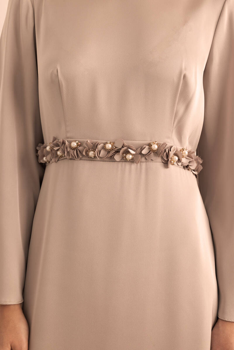 Somon Desenli Beli Bağlama Detaylı Elbise