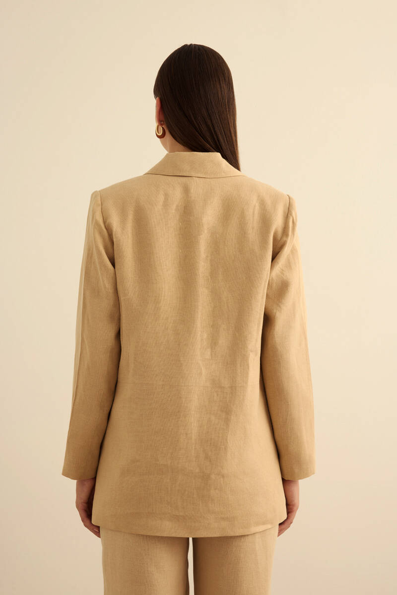 Bej Keten Kısa Ceket