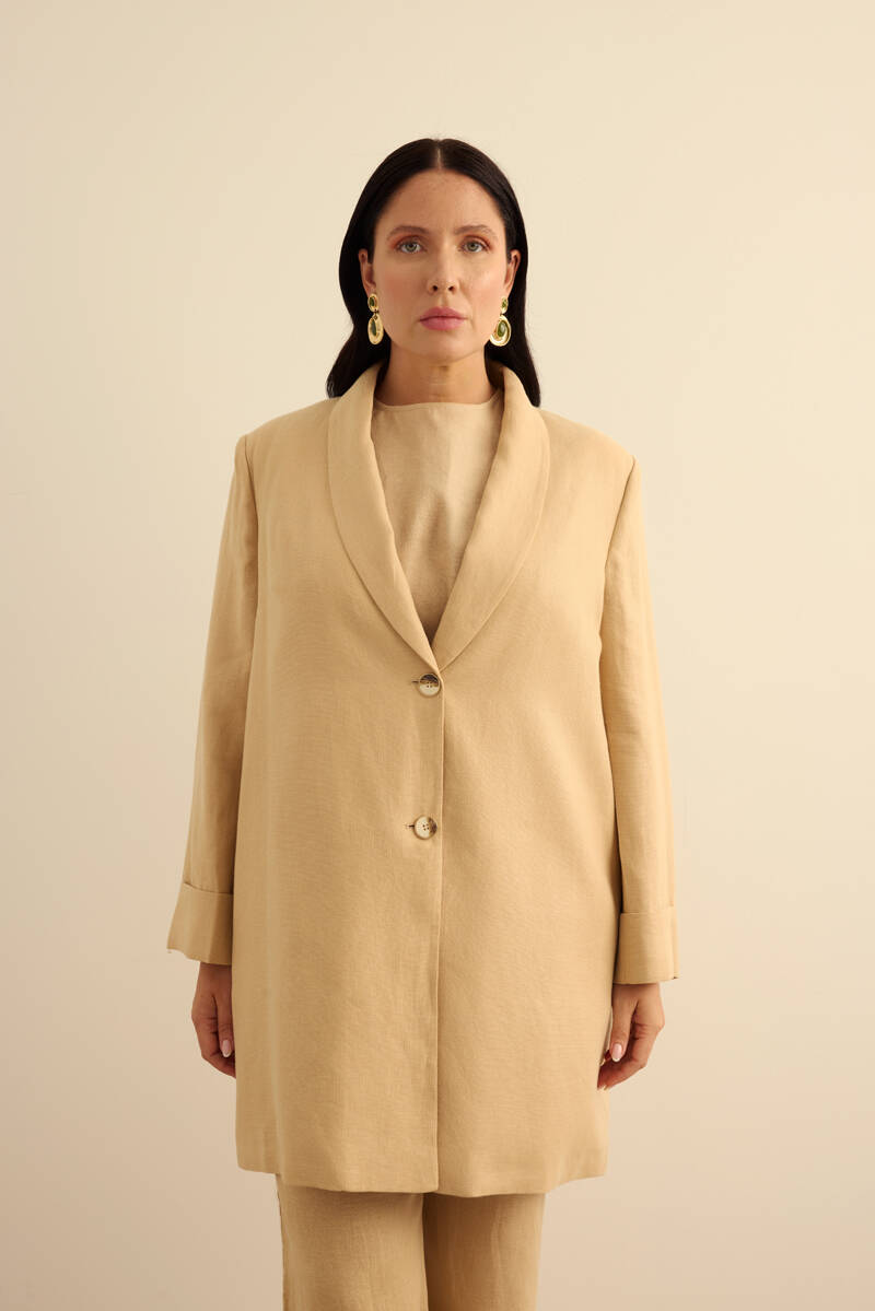 Vizon Seyyar Kuşaklı Keten Kimono
