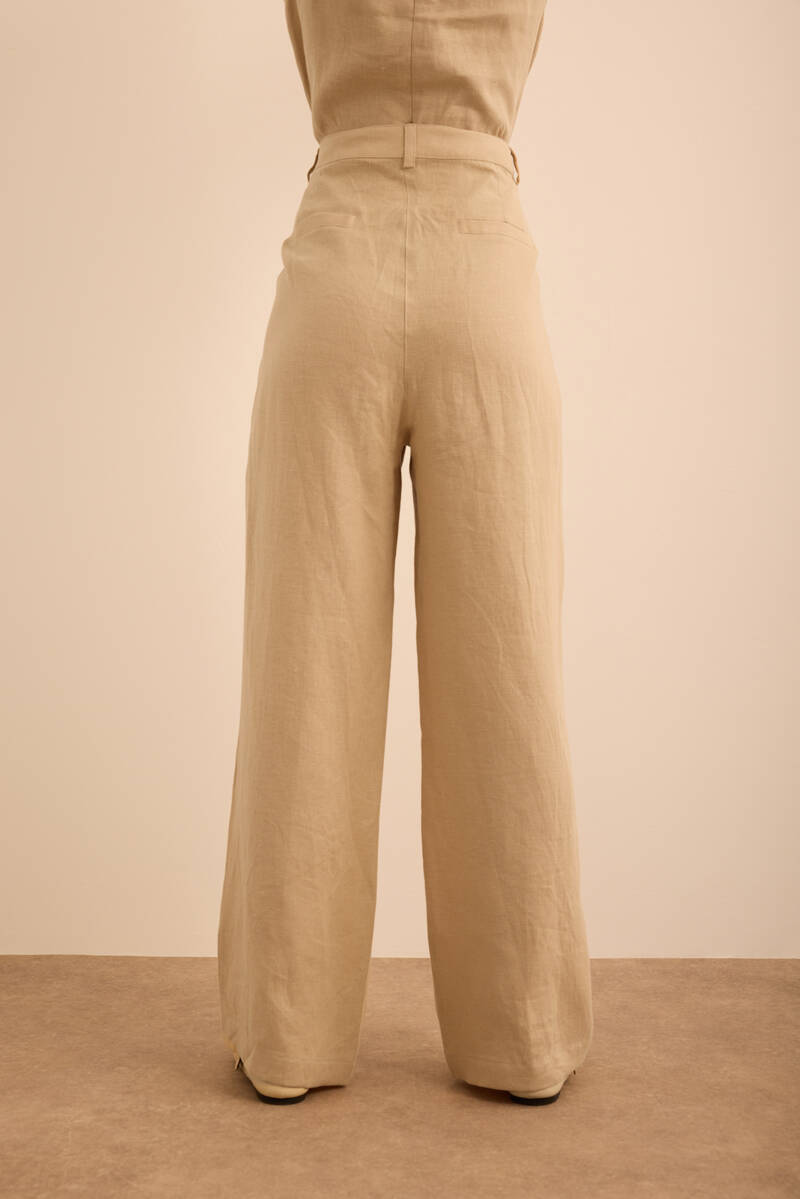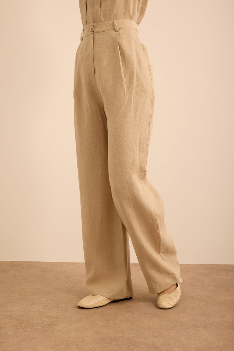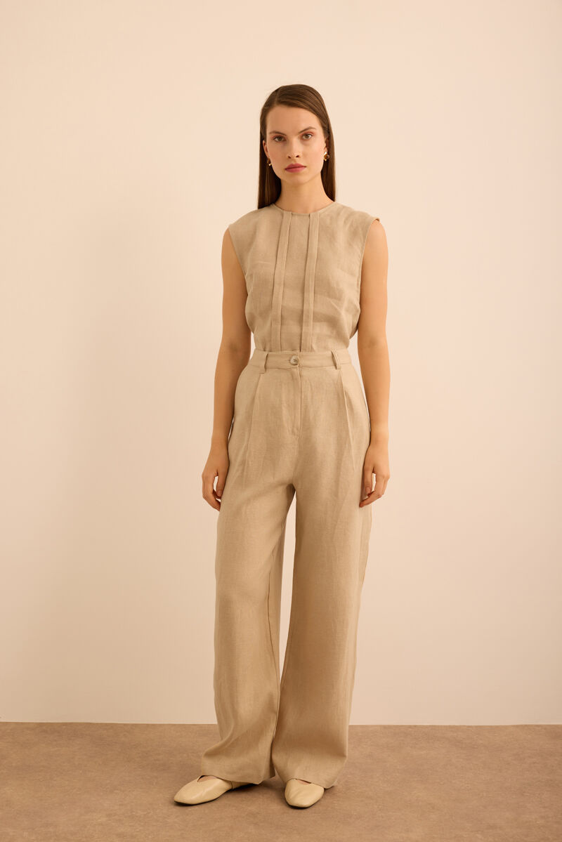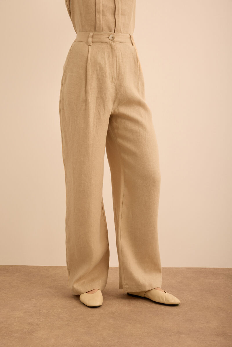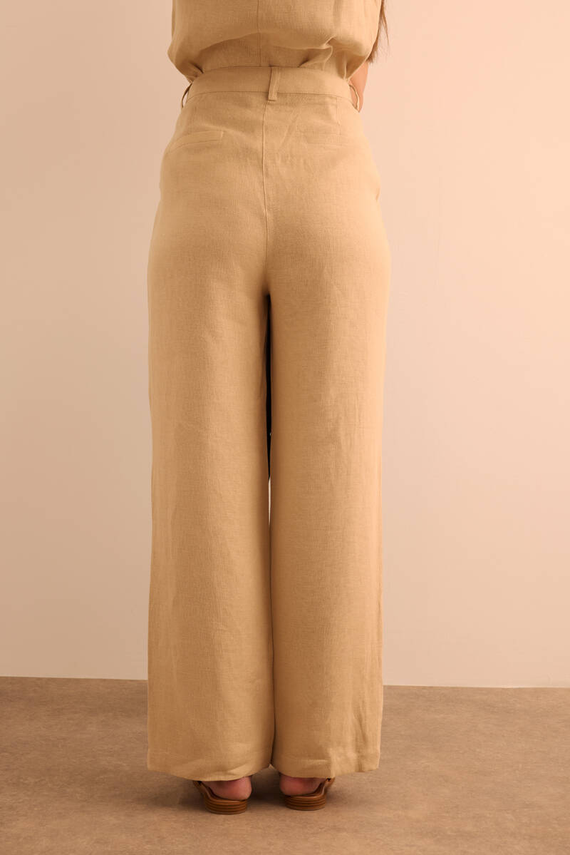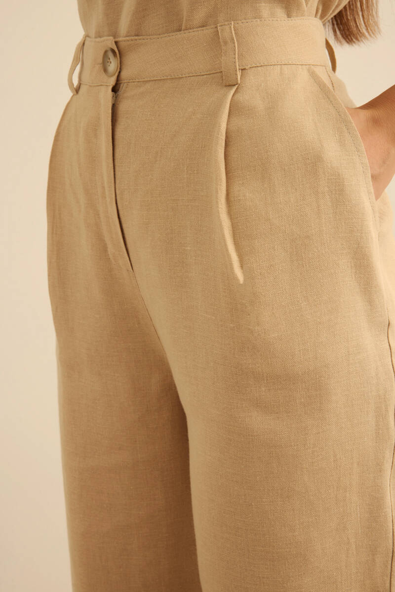 Bej Klasik Tencel Keten Pantolon