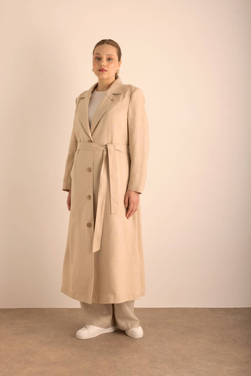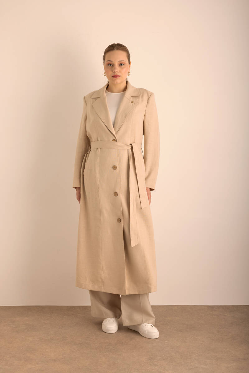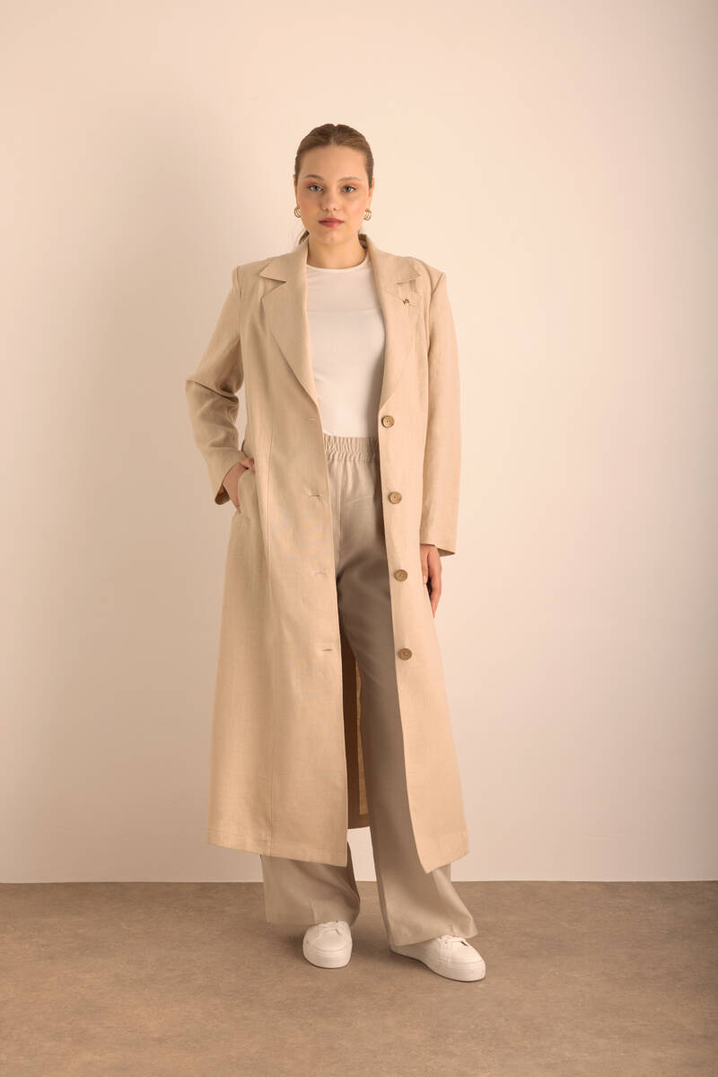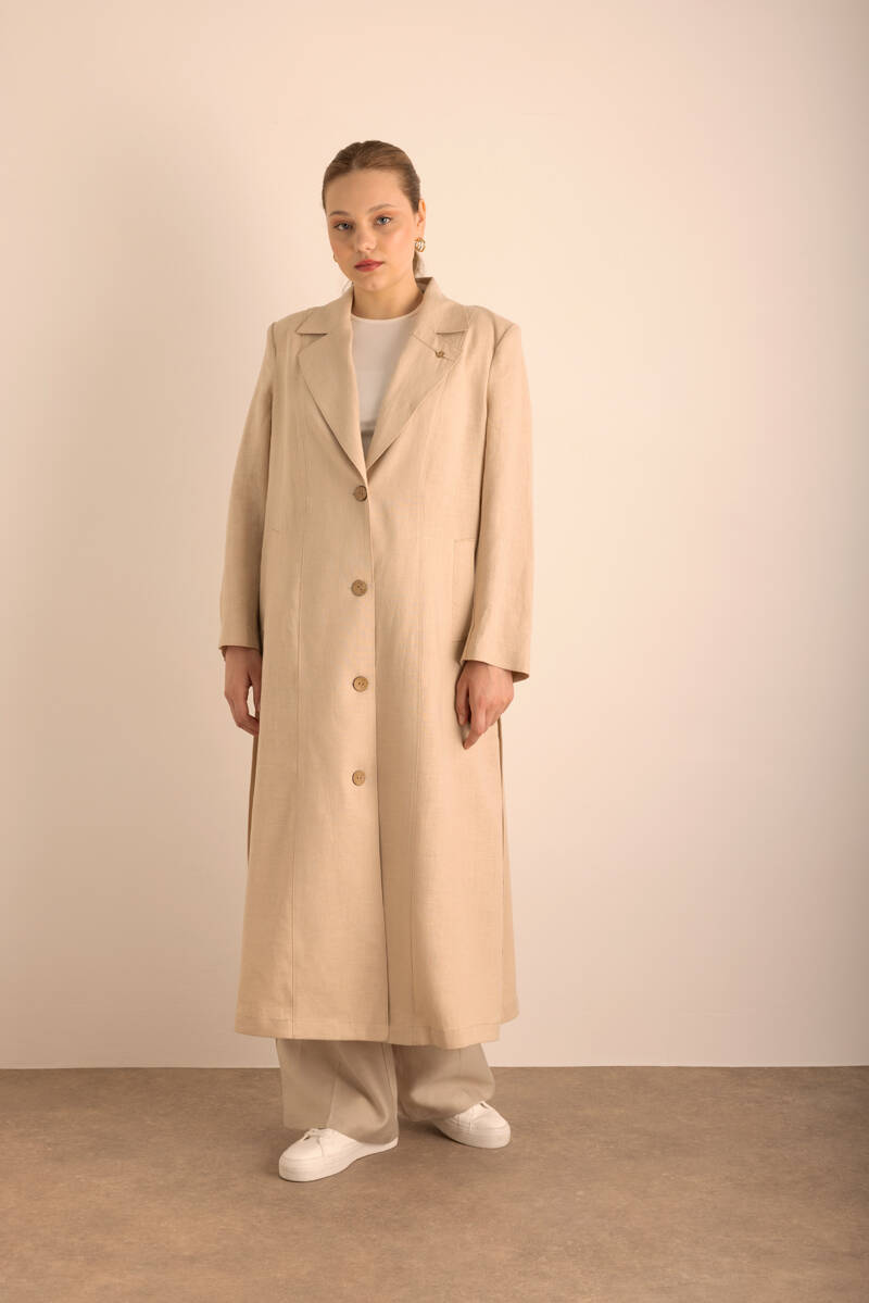 Taş Yakası Fermuarlı Keten Tencel Tunik