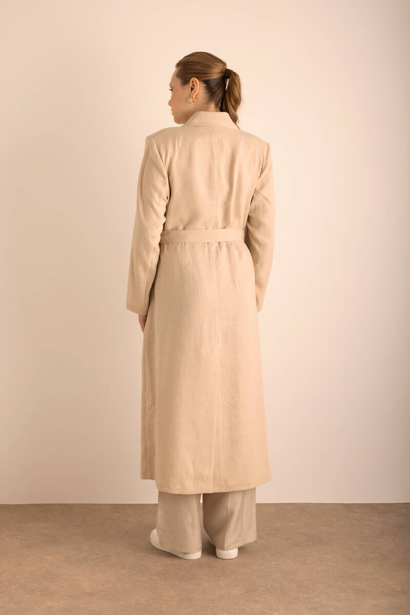 Siyah Çizgi Dokulu Tencel Rayon Kumaş Trençkot