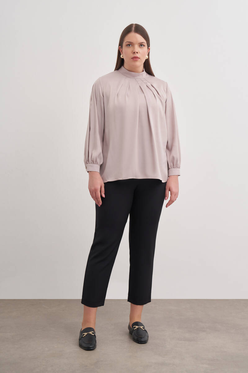 Pembe Yakası Pili ve İşleme Detaylı Dokuma Bluz