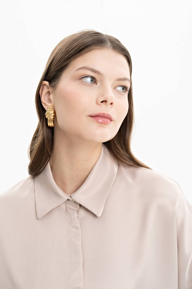 Antrasit Yaka İşlemeli Çizgili Bluz