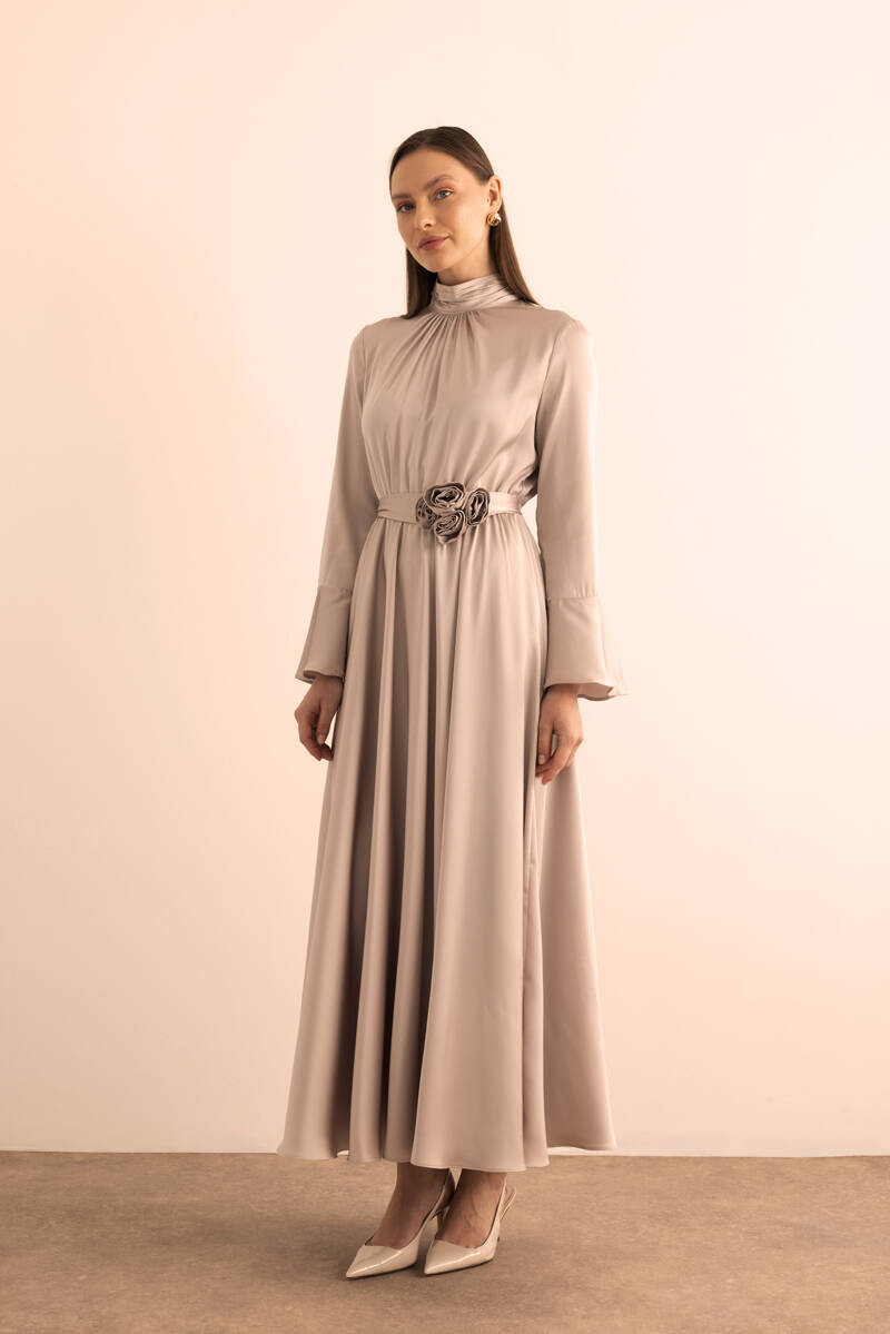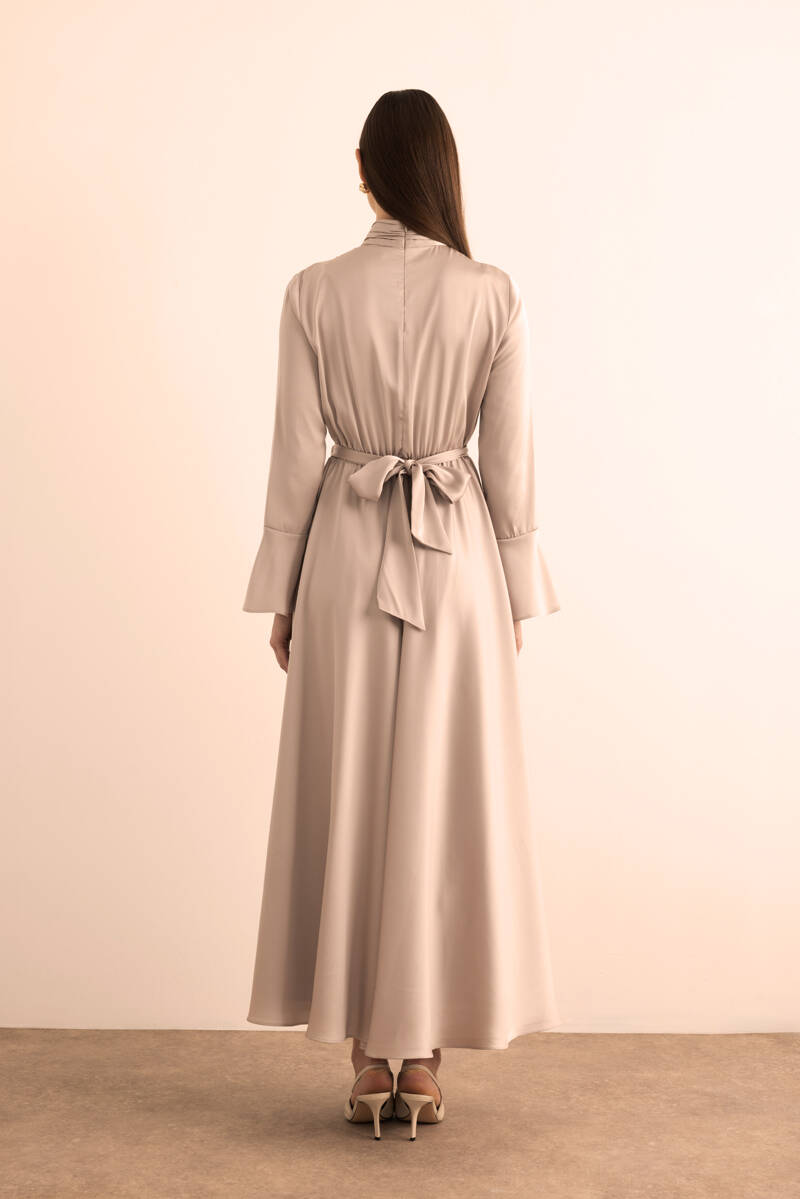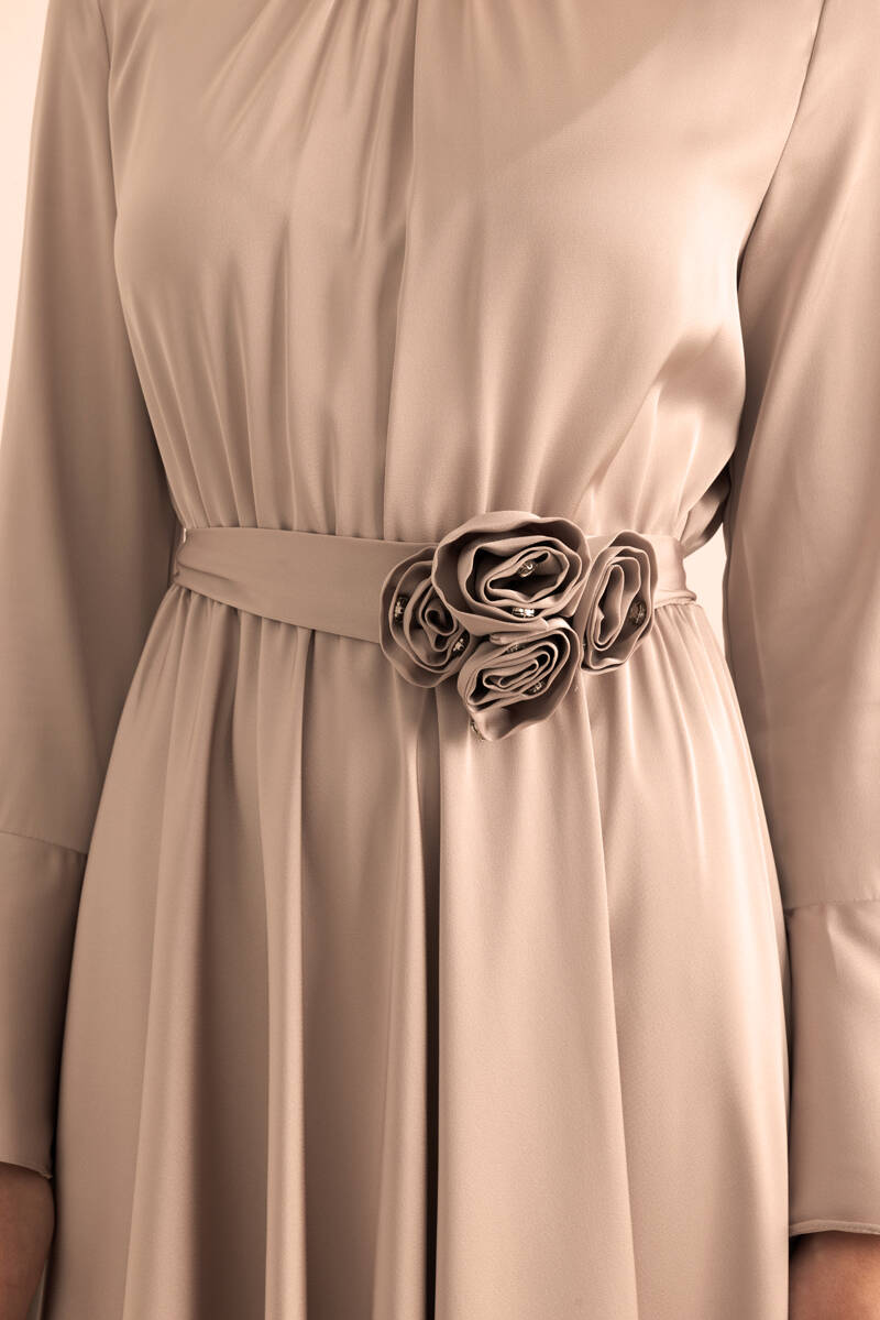 Ekru Seyyar Kemerli Detaylı Tulum