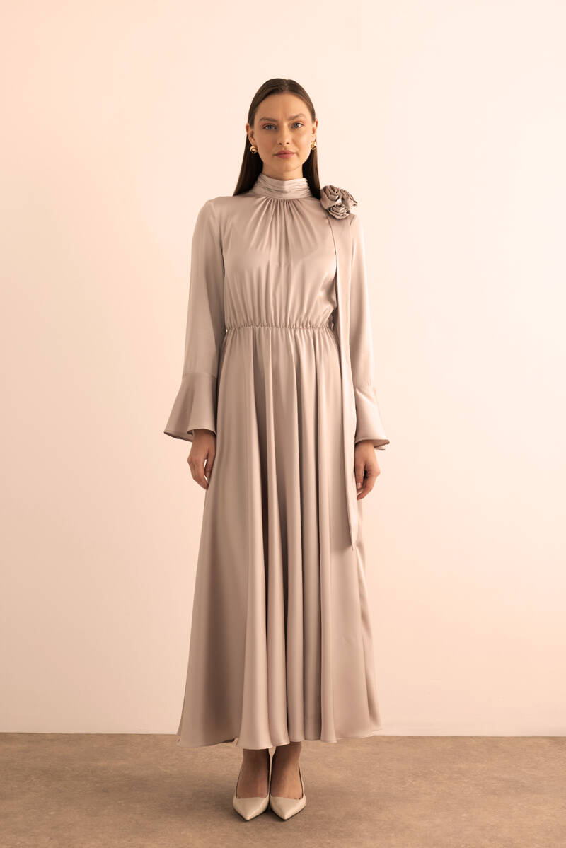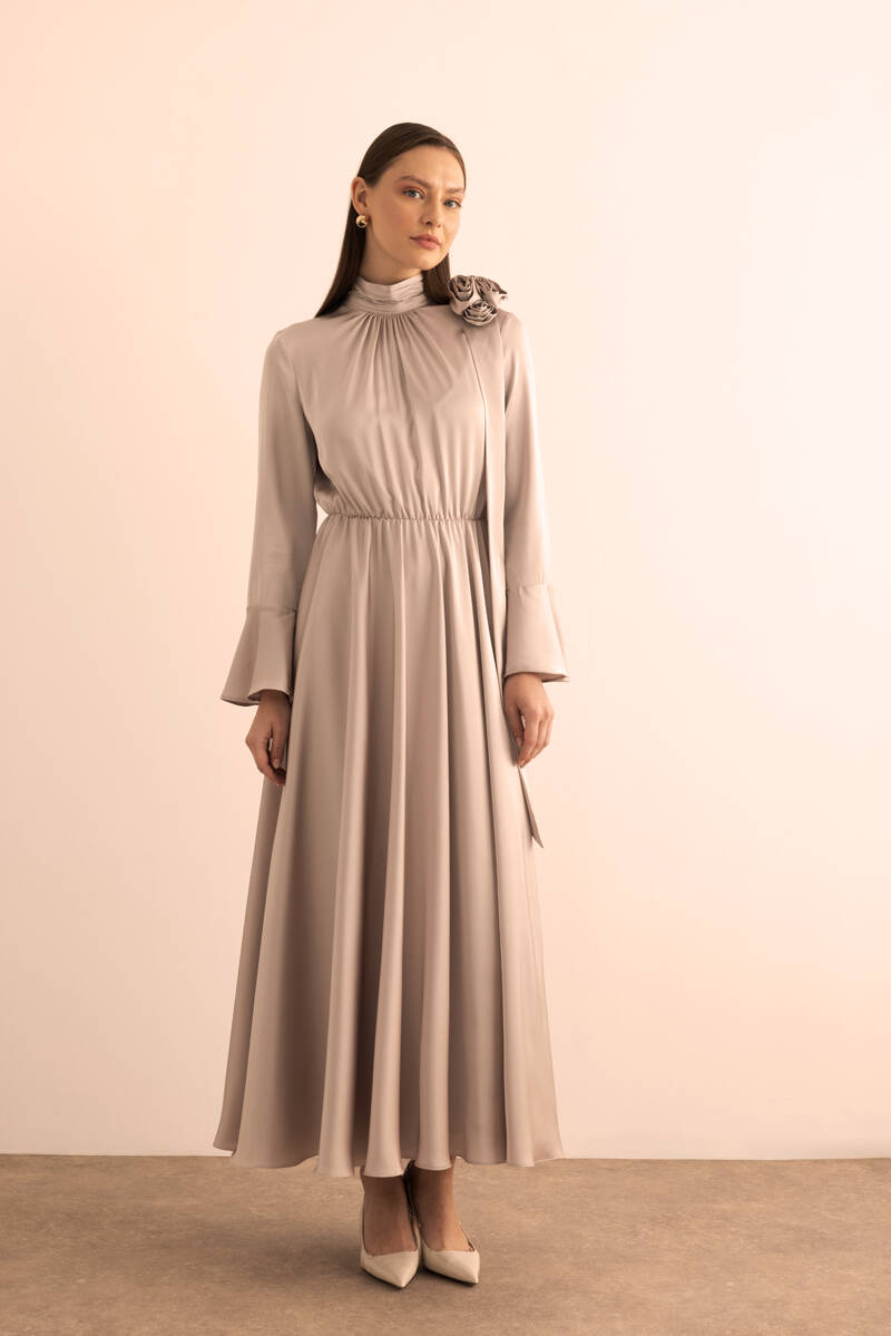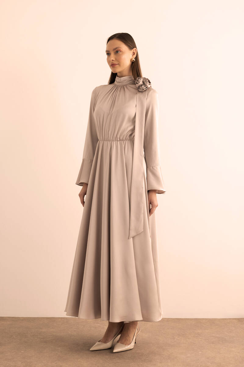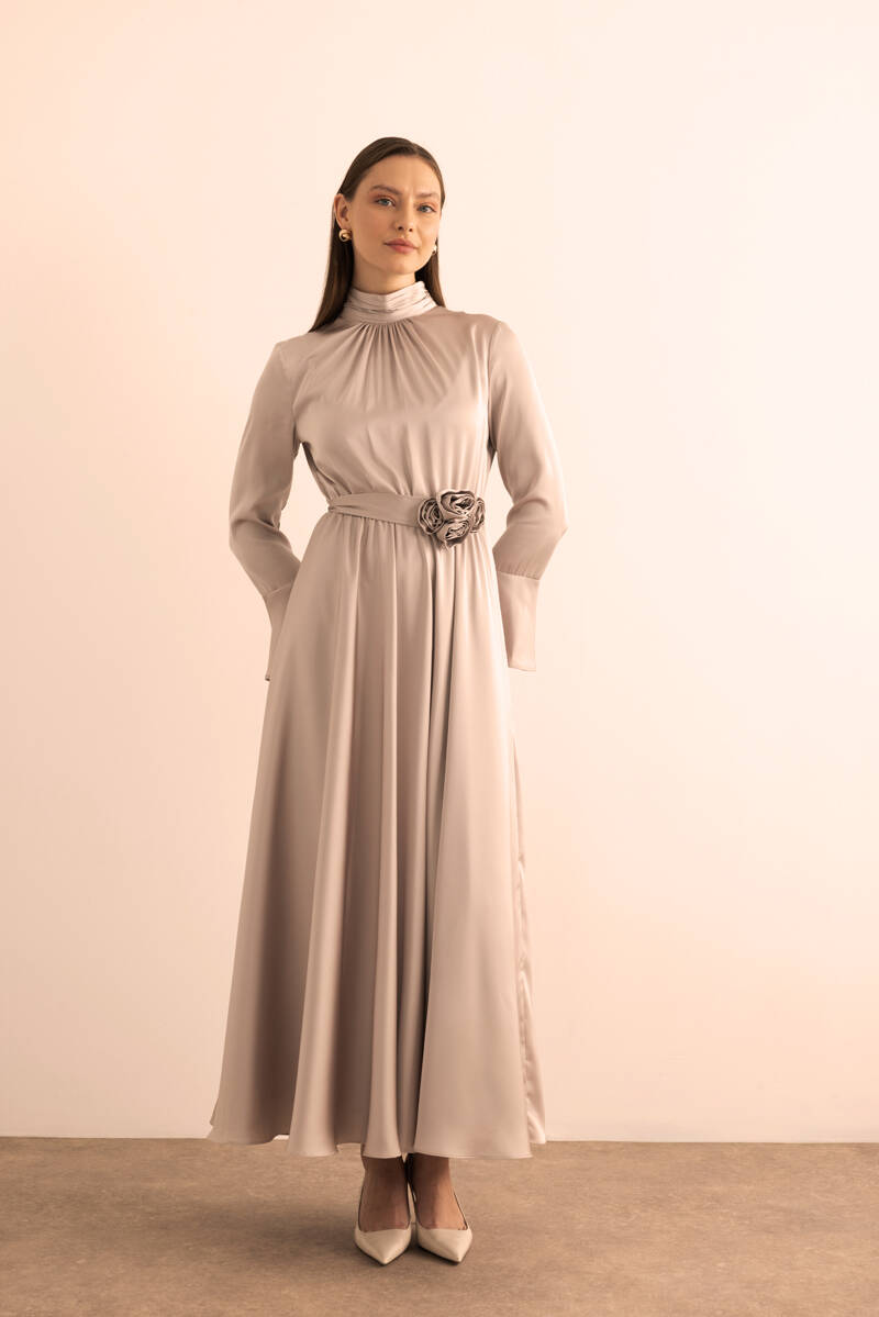 Ekru Seyyar Kemerli Detaylı Tulum