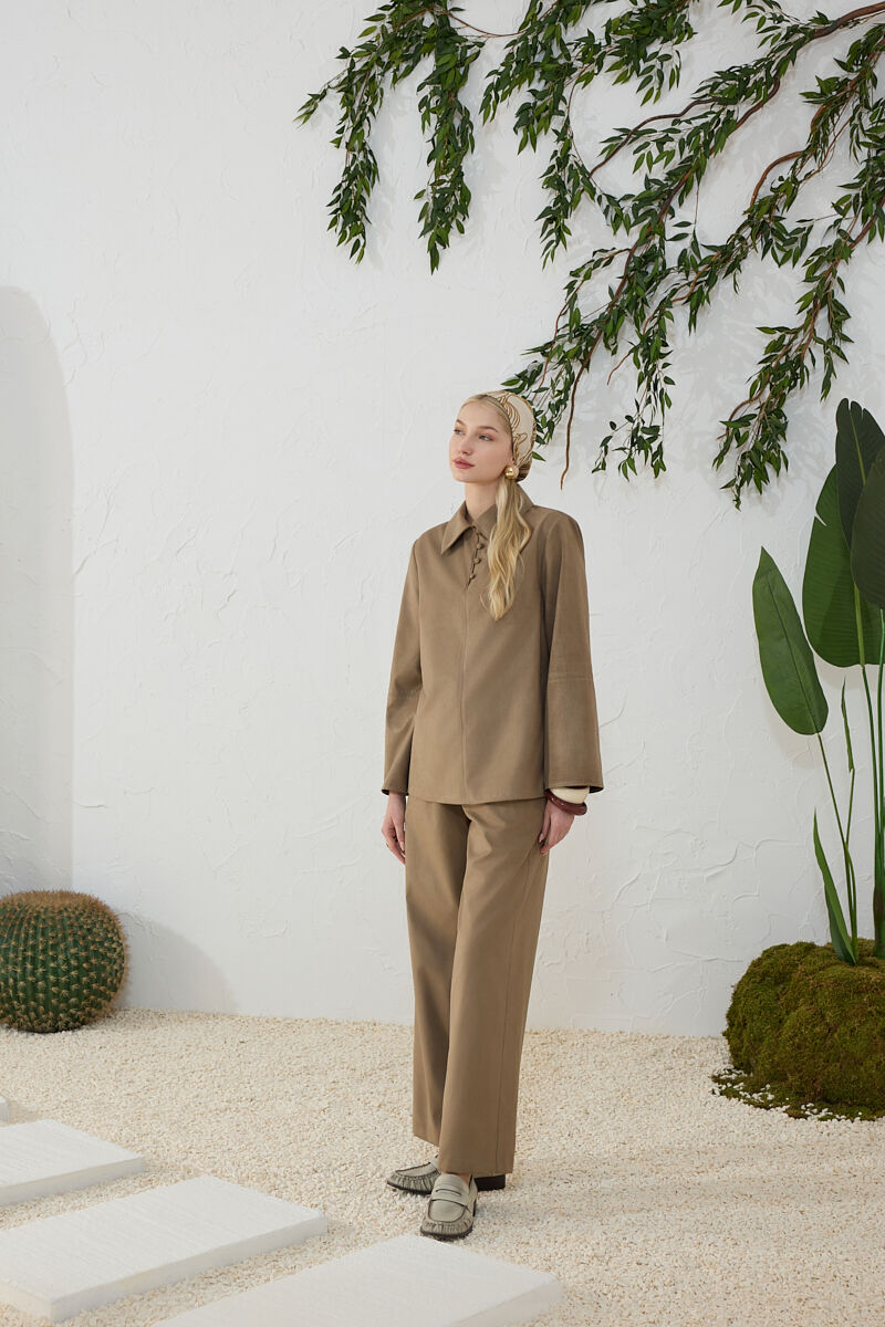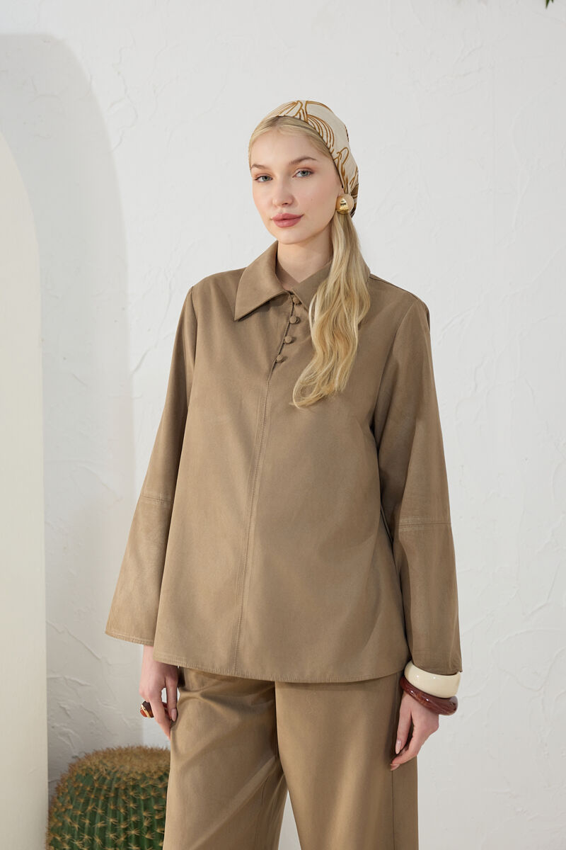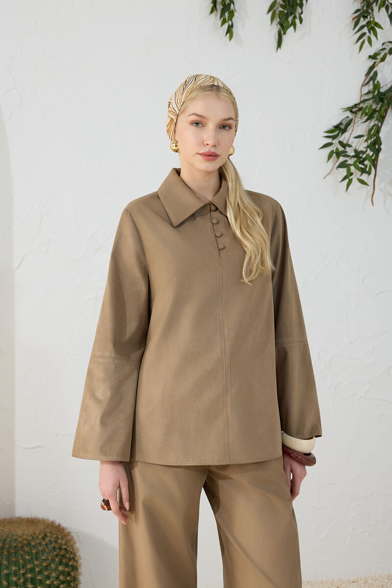 Saks Ön Göğüs Kısmı Pile ve Parça Detaylı Bluz