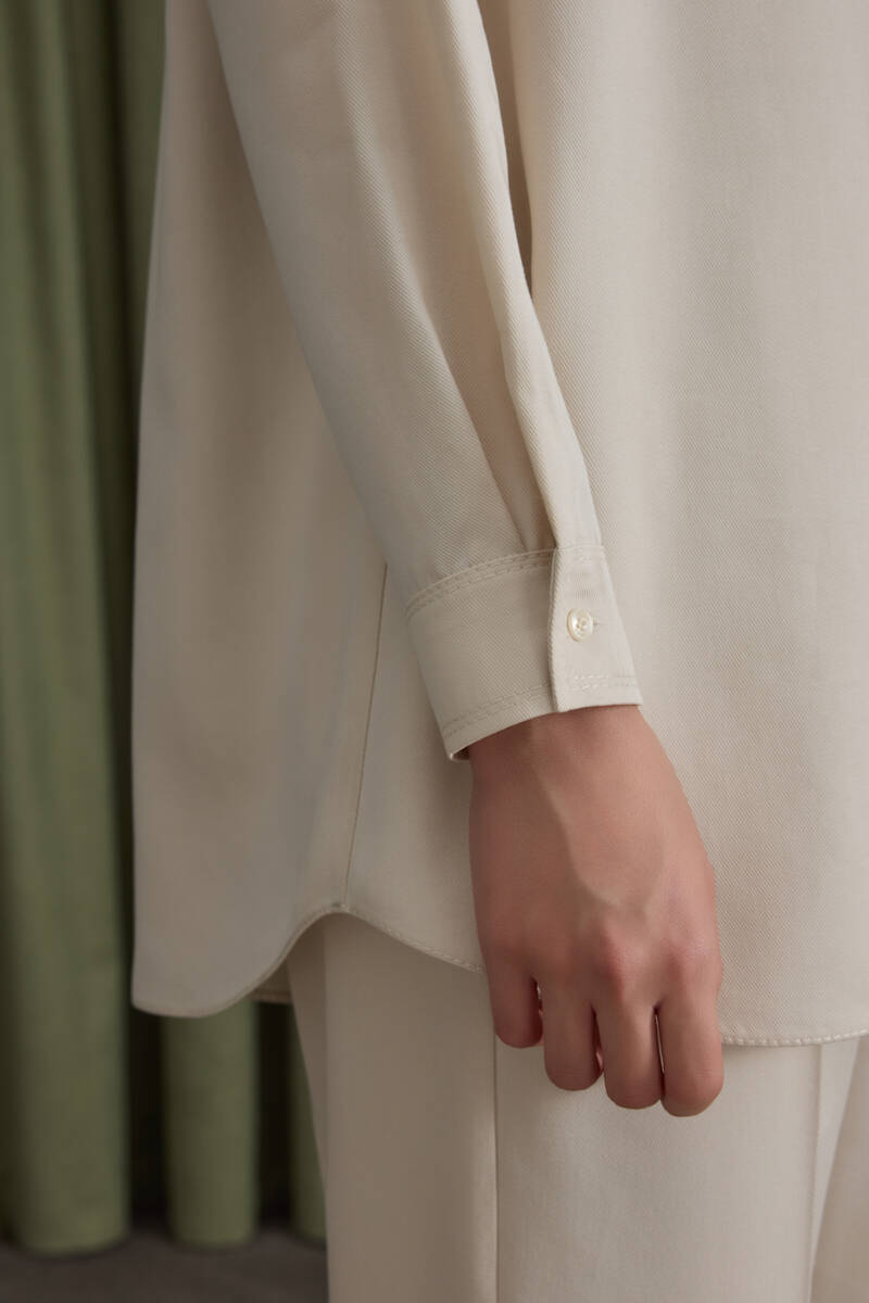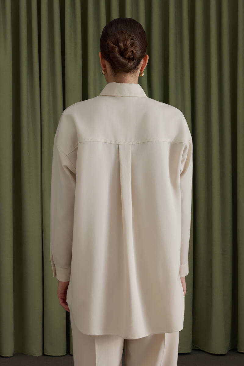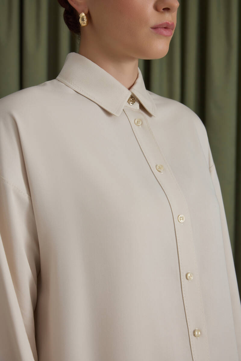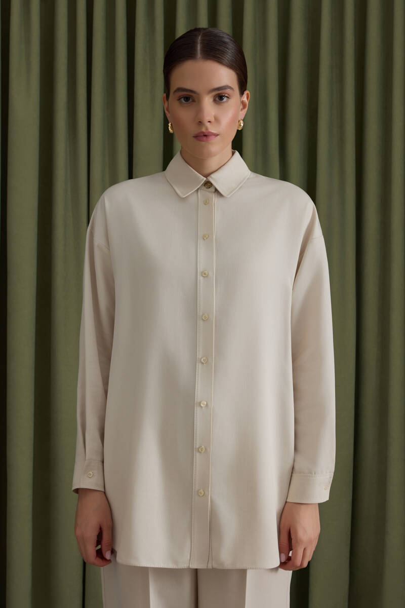 Ekru Kol Ucu Dikiş Detaylı Viscon Tunik