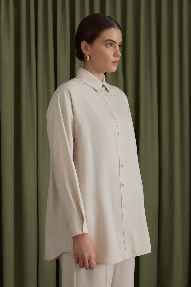 Bej Rahat Form Tencel Keten Tunik
