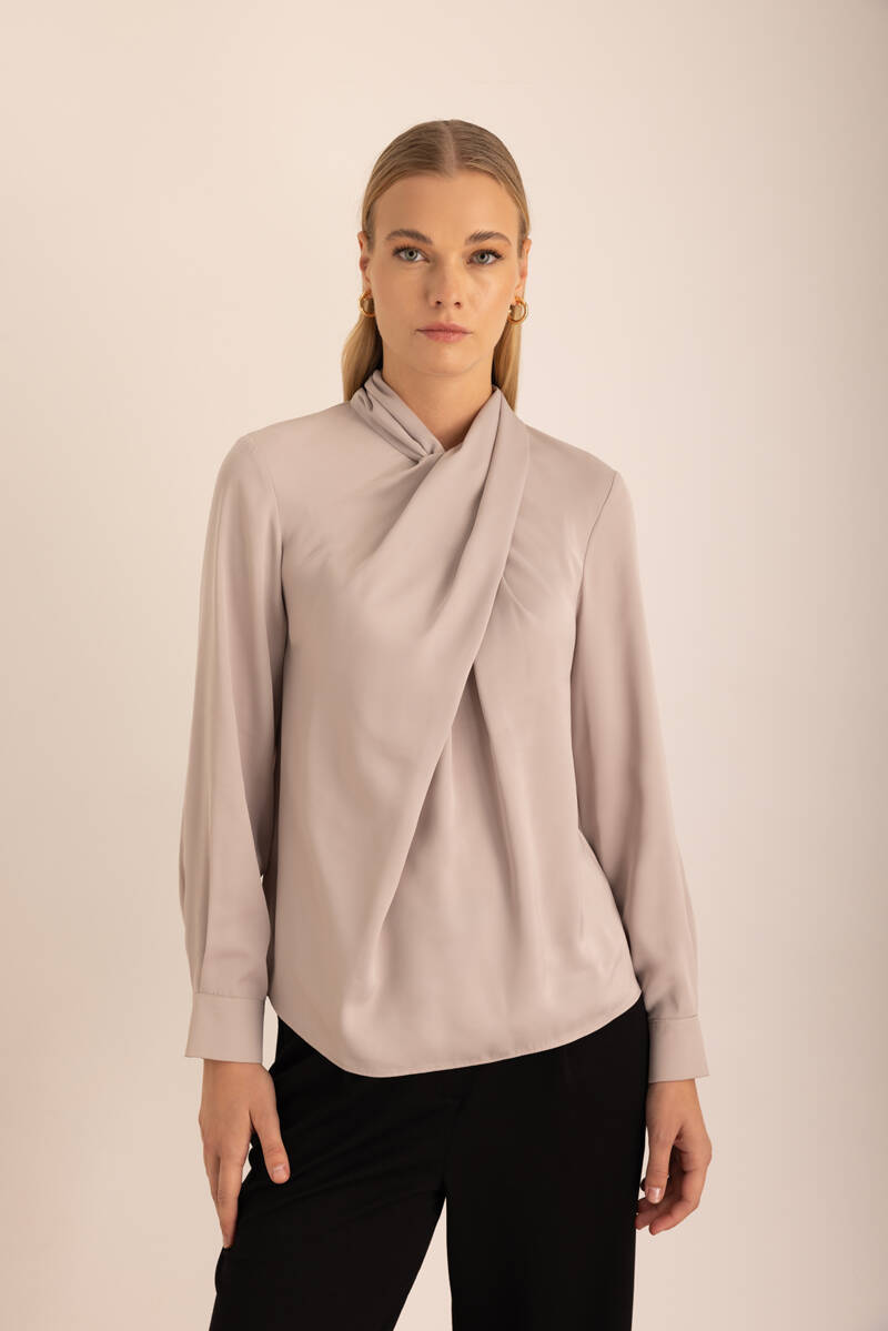Saks Ön Göğüs Kısmı Pile ve Parça Detaylı Bluz
