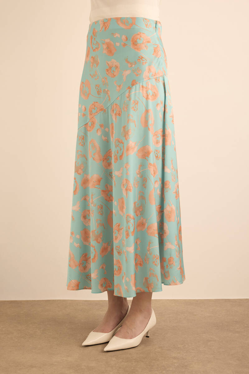 Turkuaz Çiçek Desenli Baseni Kup Detaylı Etek
