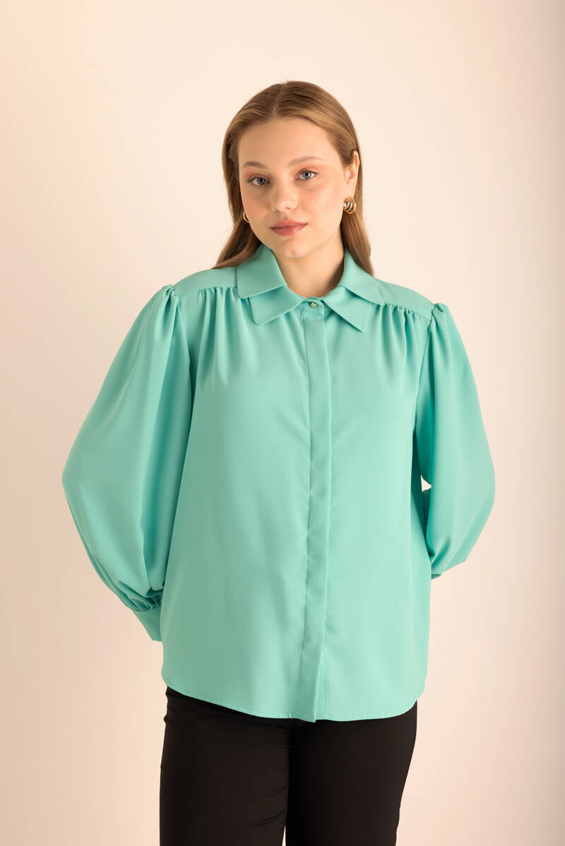 Vizon Bisiklet Yaka Kolsuz Keten Bluz