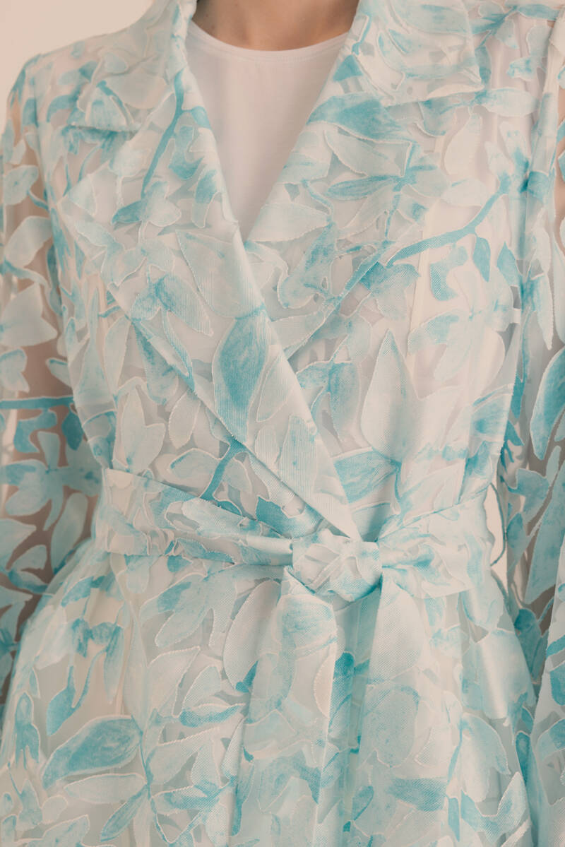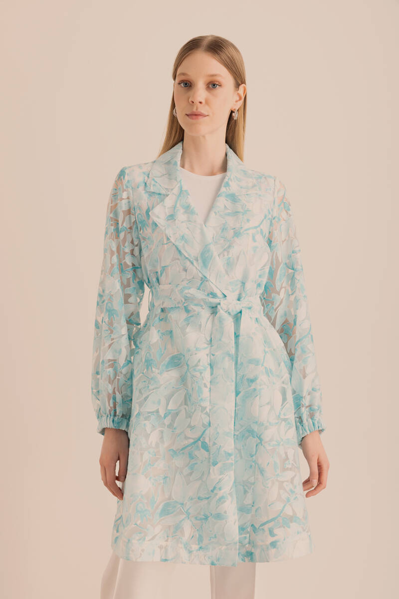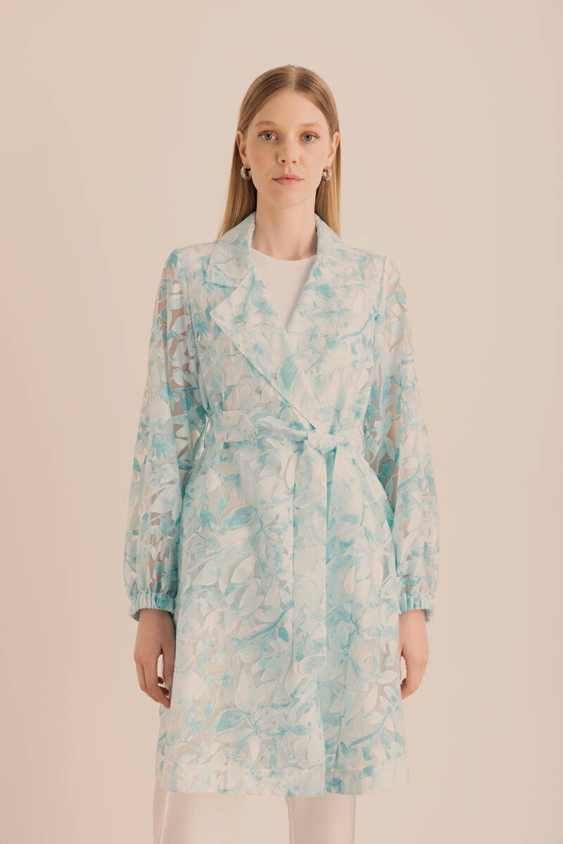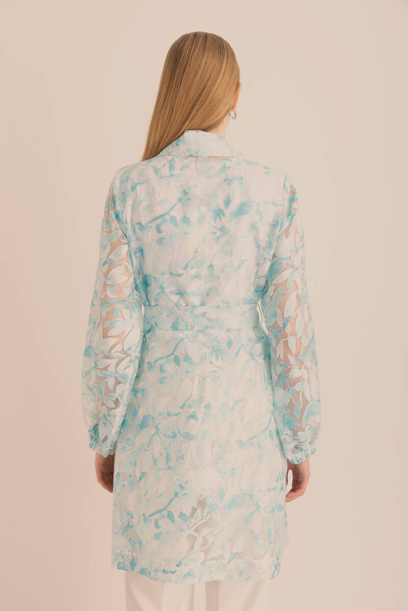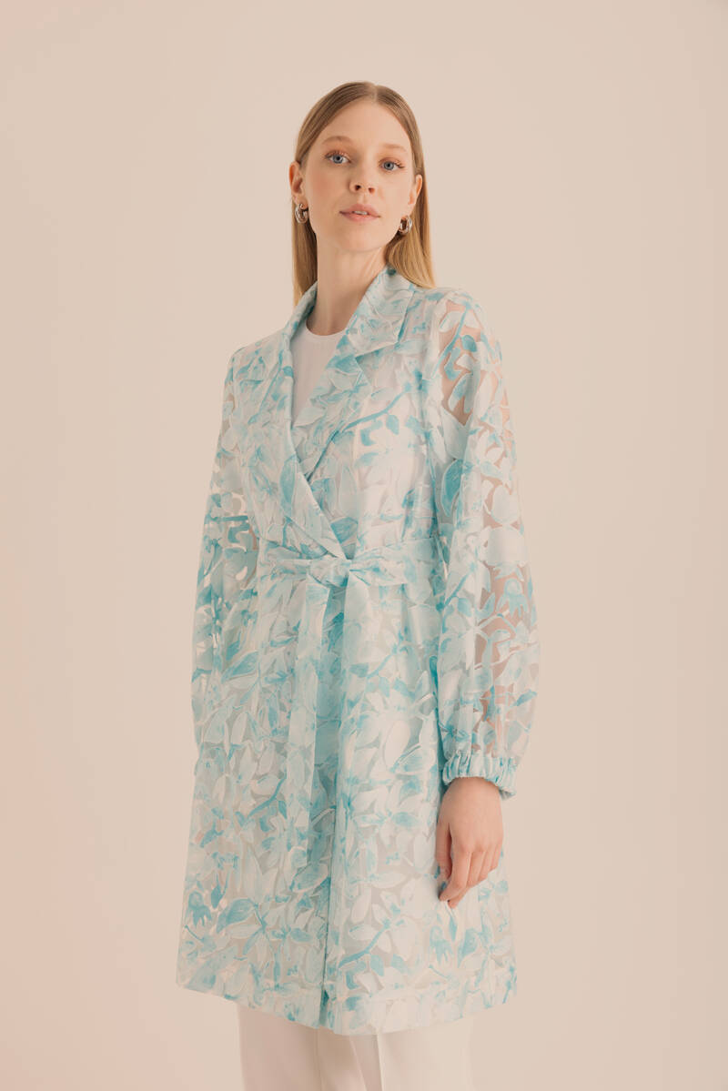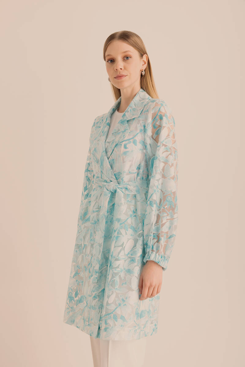 Turkuaz Yakma Organze Kumaştan Transparan Kap
