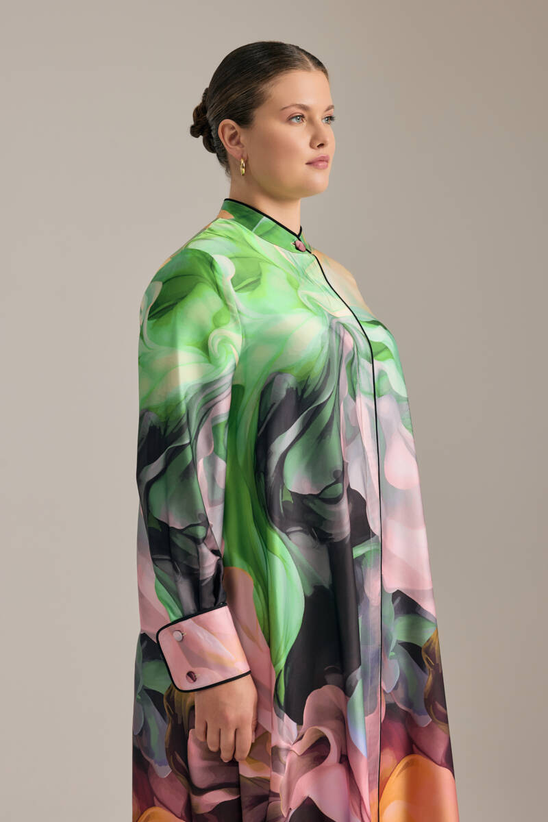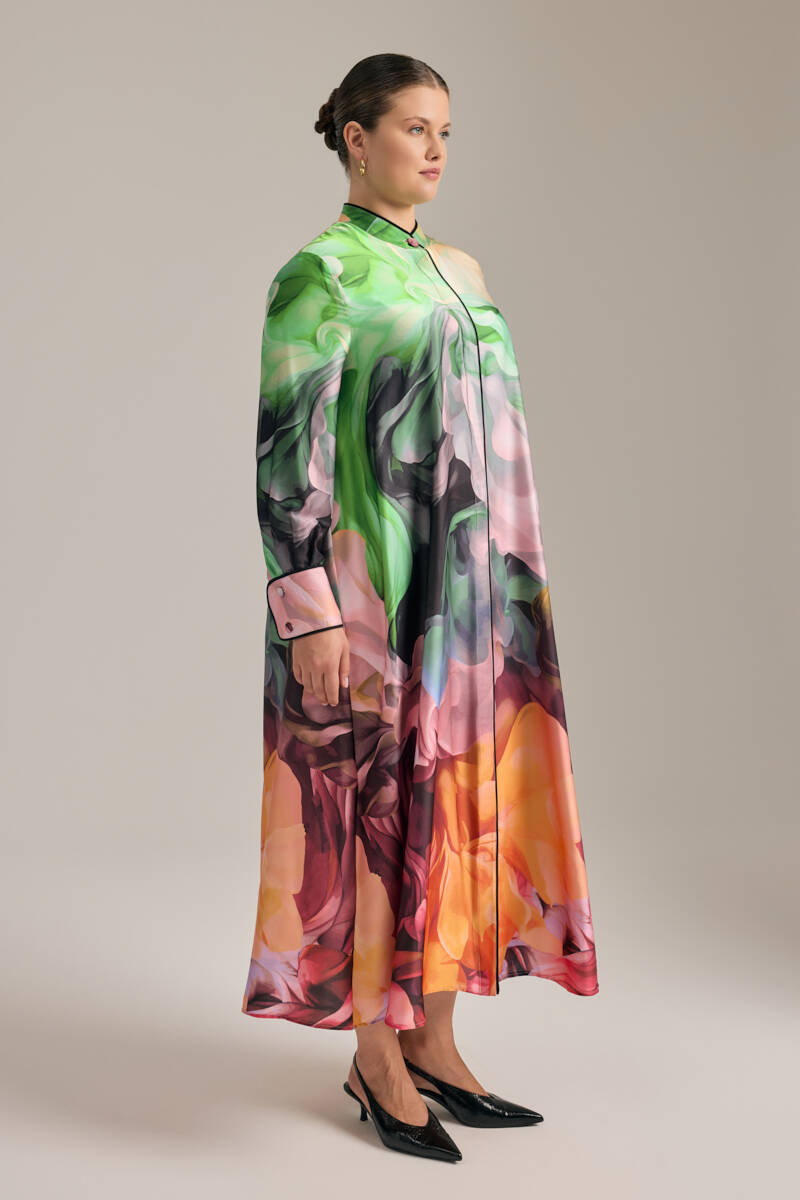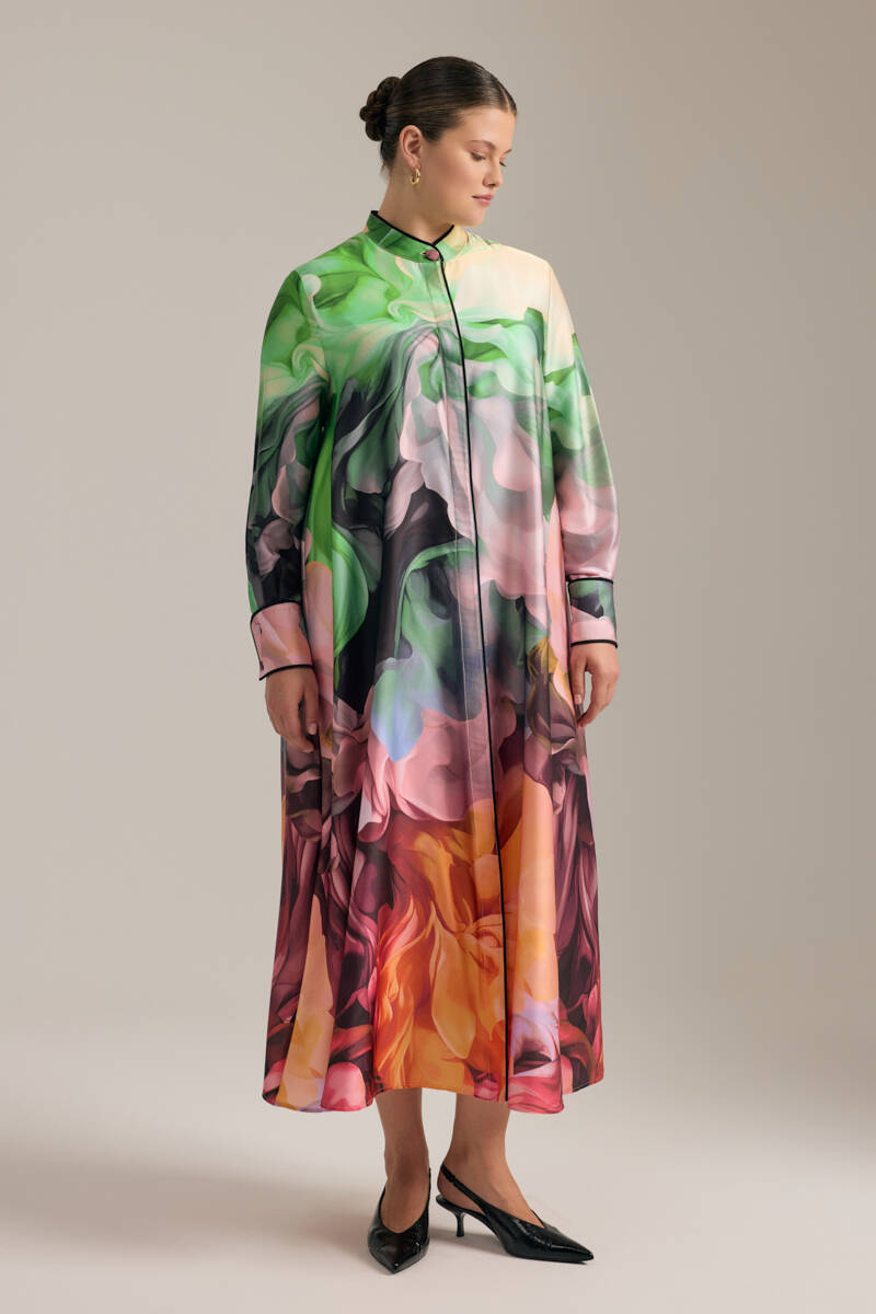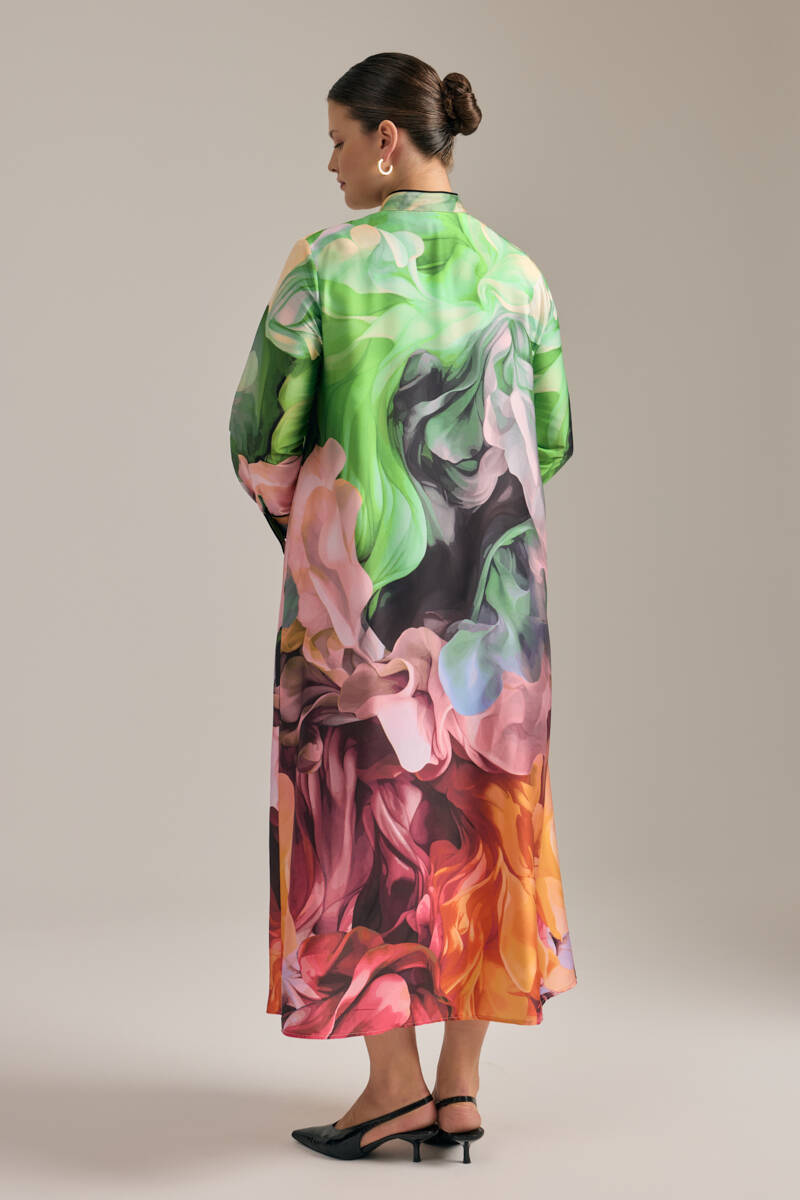Ekru Desenli Gömlek Elbise