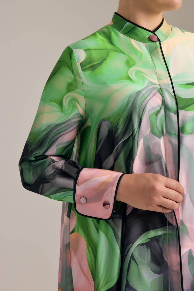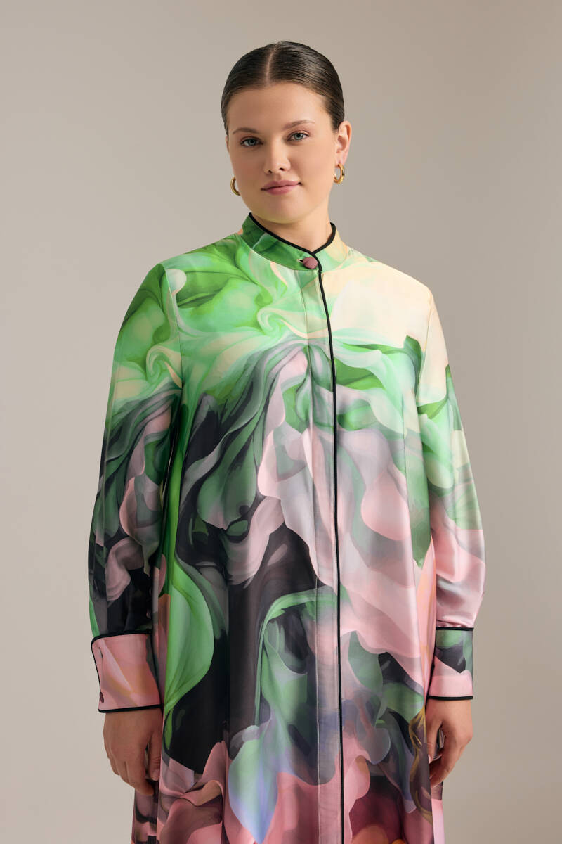Turkuaz Geometrik Desenli Gömlek Elbise