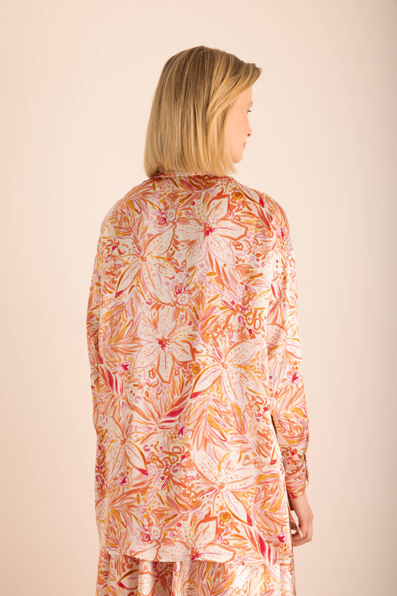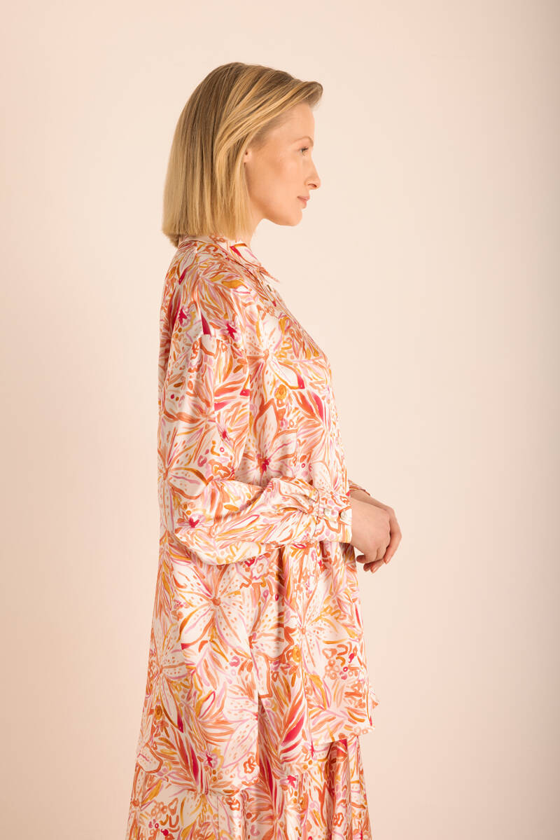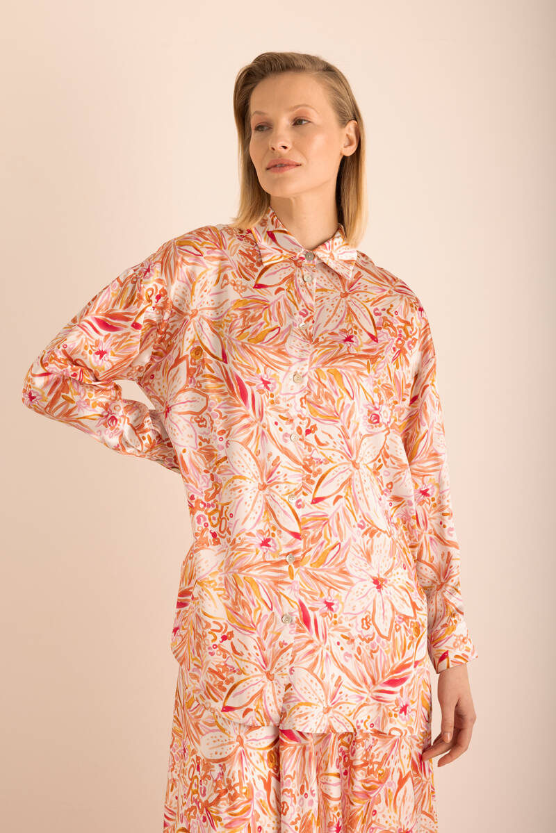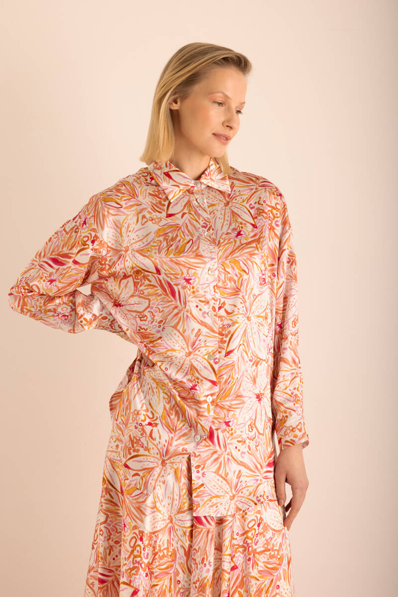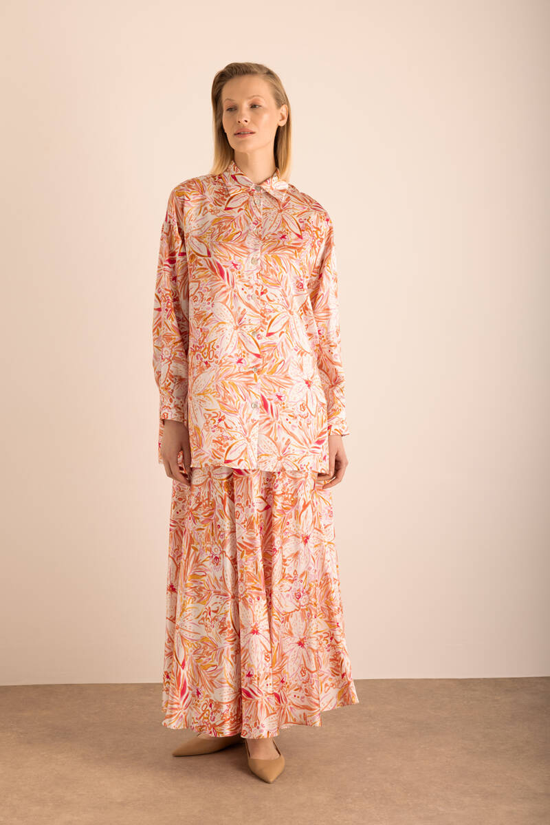 Turuncu Desenli Kloş İpek Etek