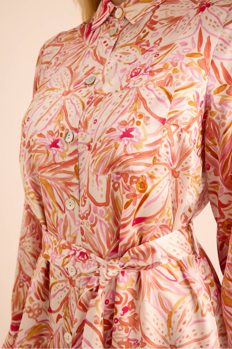 Pembe Batik Desenli Elbise