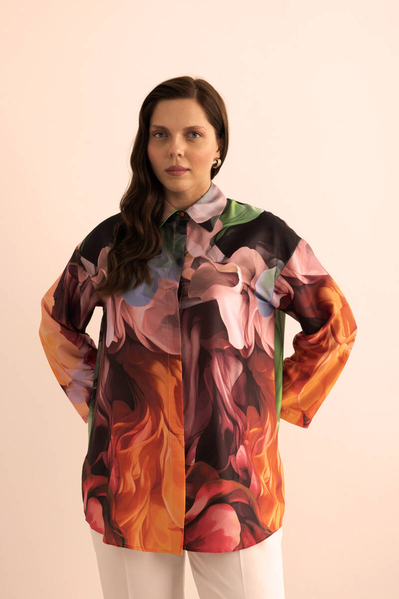 Turuncu Geometrik Pano Desenli Tunik
