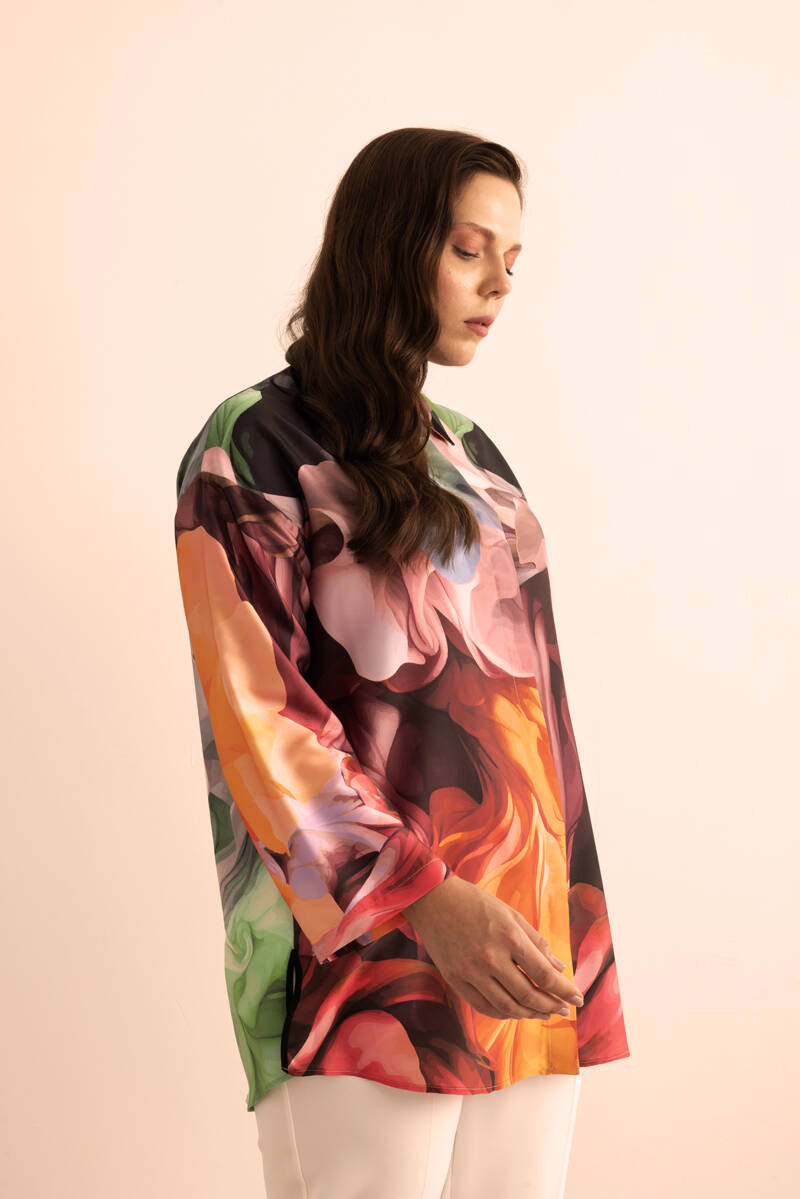 Yeşil Kemeri İşlemeli Dökümlü Tunik
