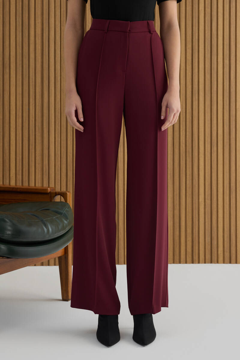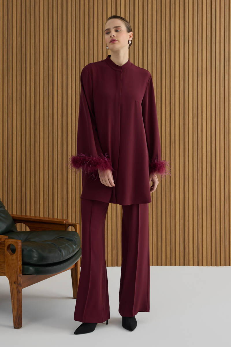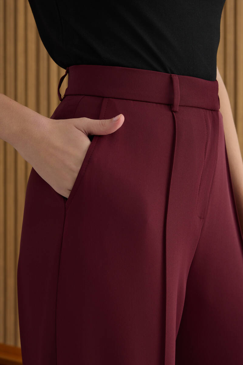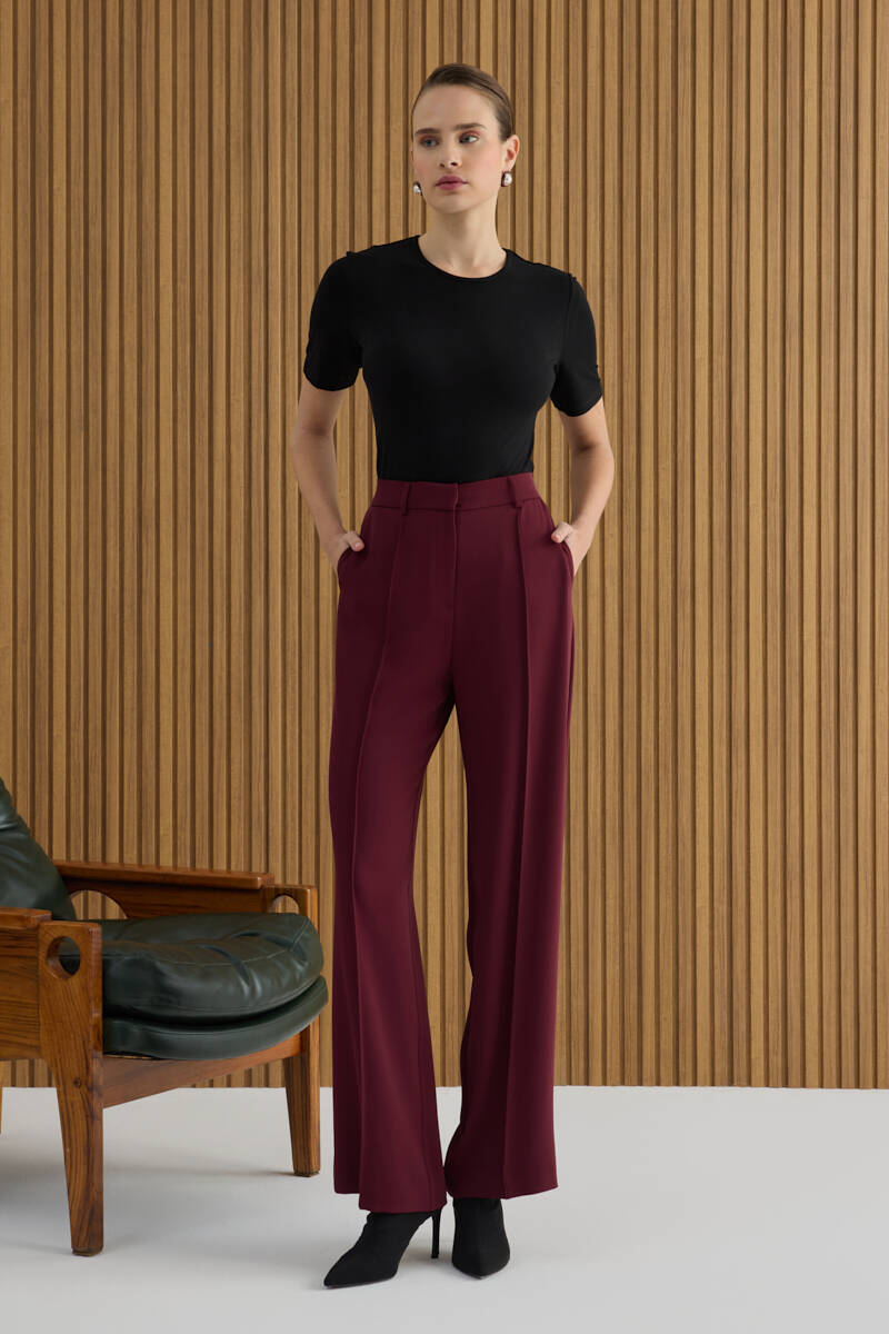 Kırmızı İspanyol Paça Dokuma Pantolon