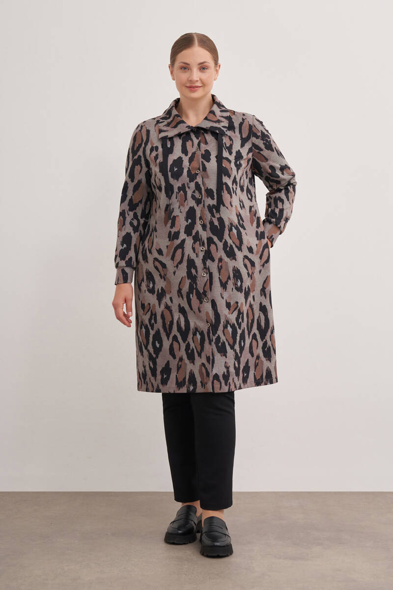 Ekru Yakası Taşlı Düğmeli Kap