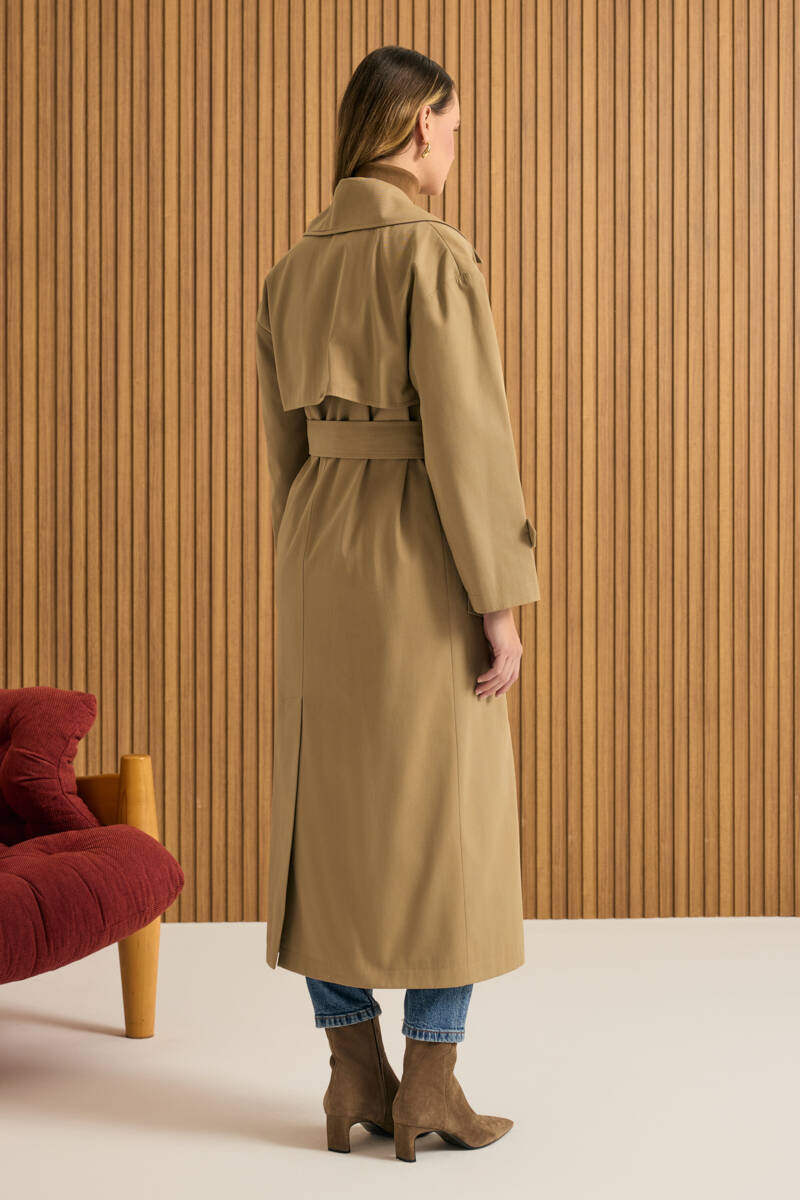 Bej İşleme Detaylı Kruvaze Kapama Trençkot