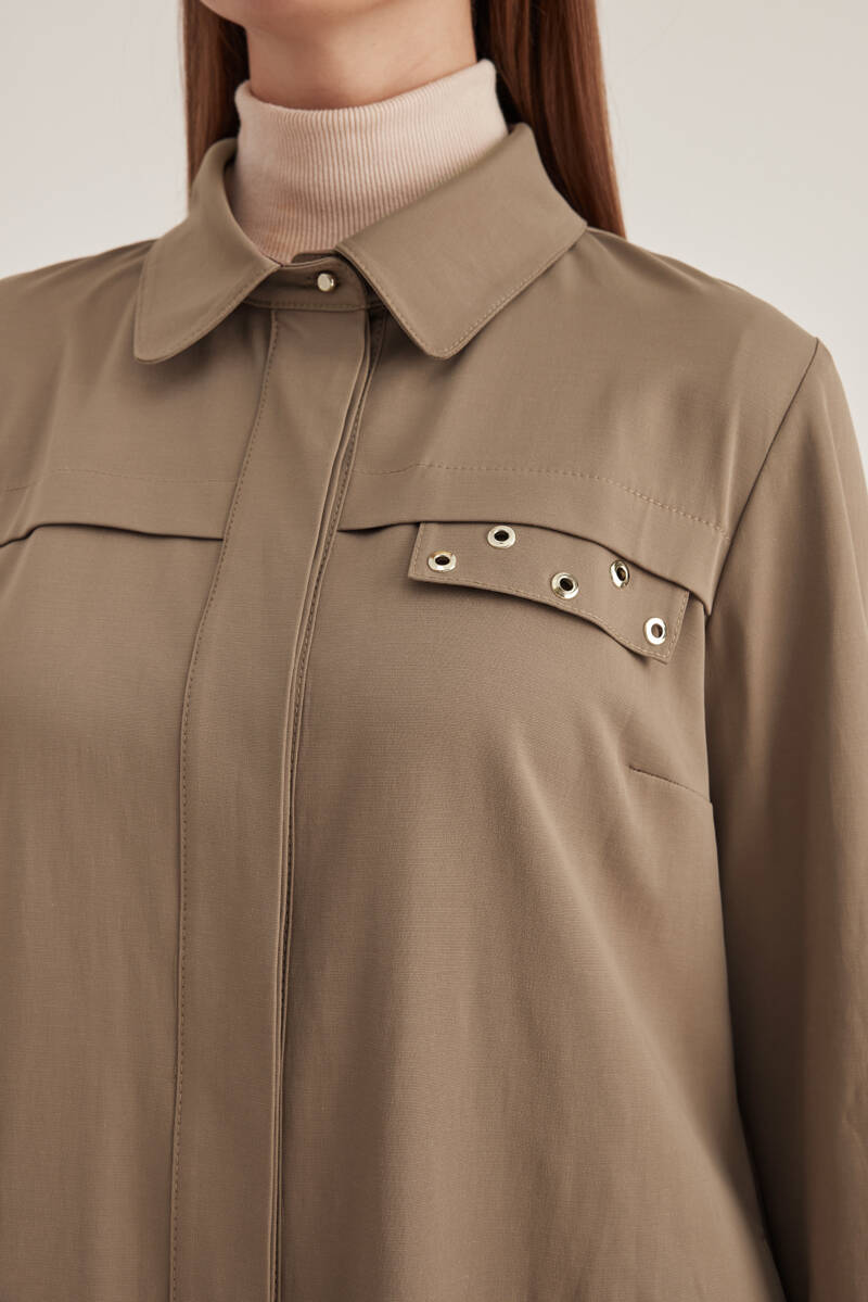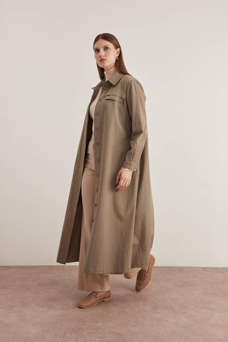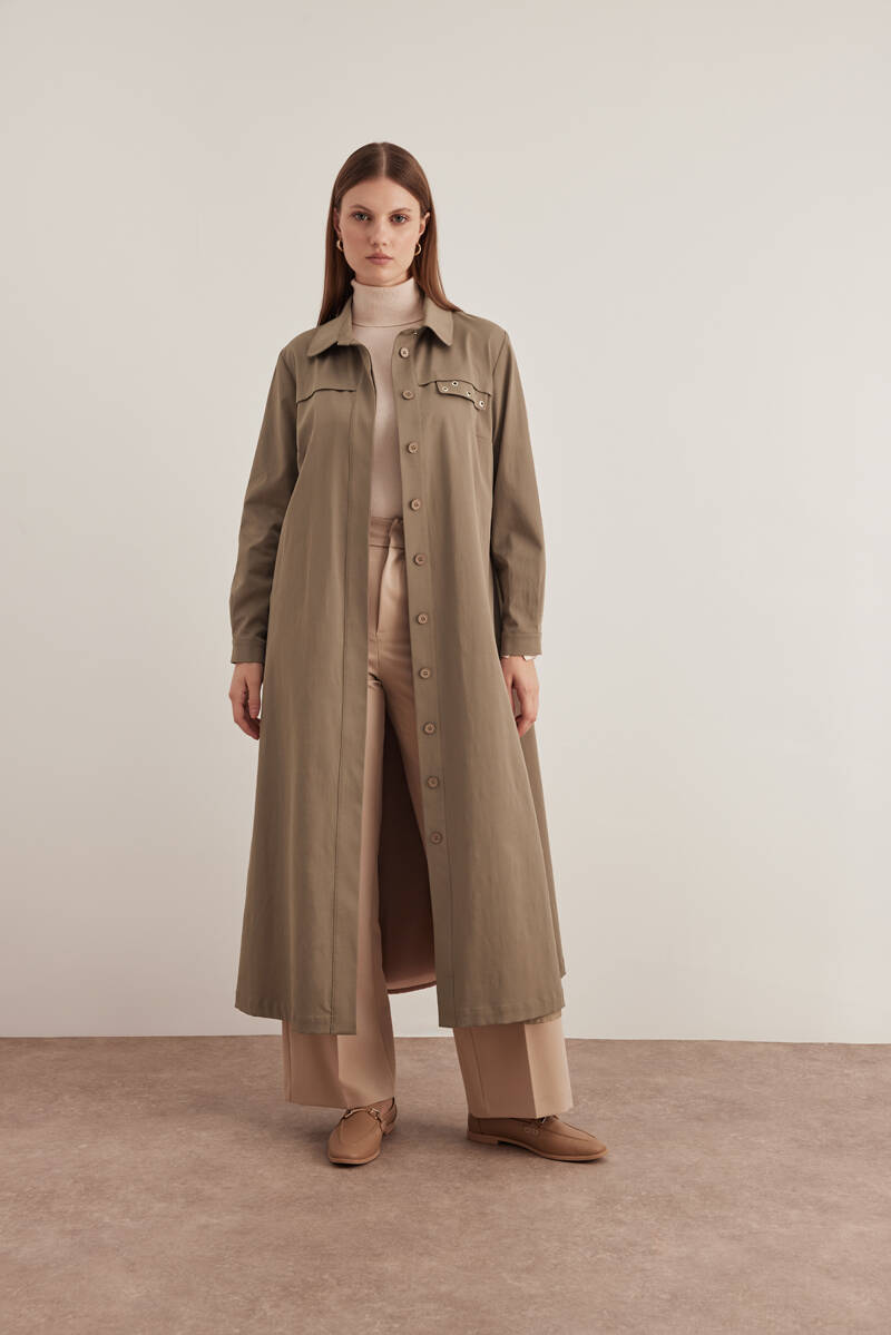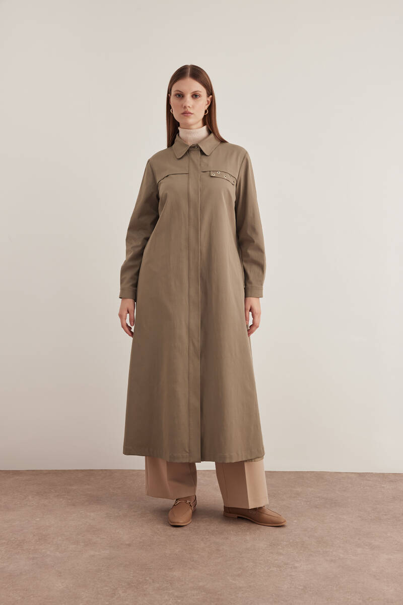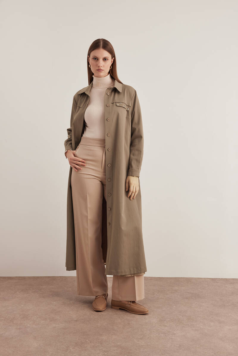 Gül Kurusu Kolları İşleme Detaylı Pardösü