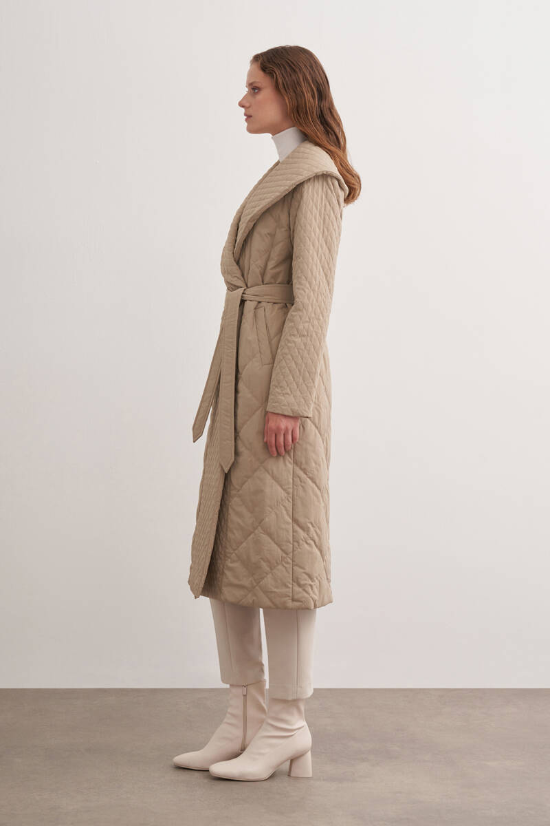 Bej 5829111 Yaka Detaylı Kapitone Kısa Mont
