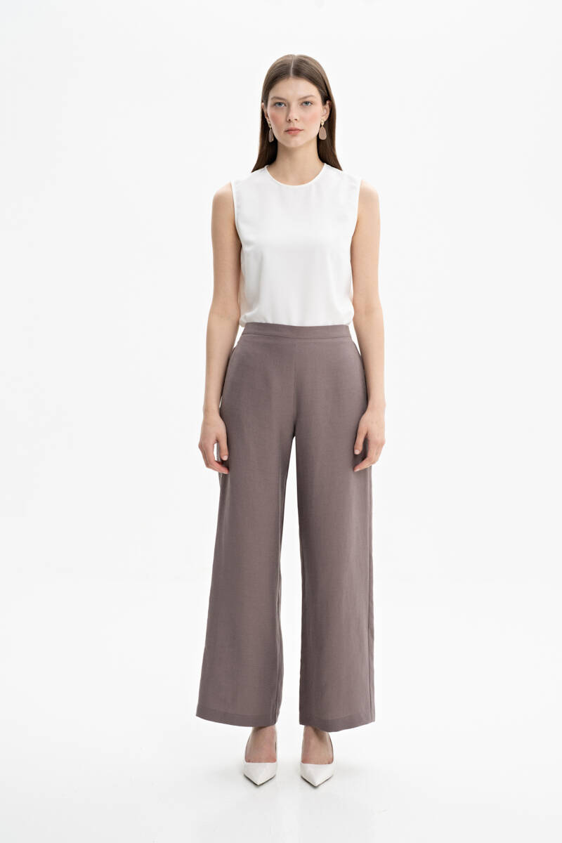 Vizon Beli Lastikli Keten Pantolon