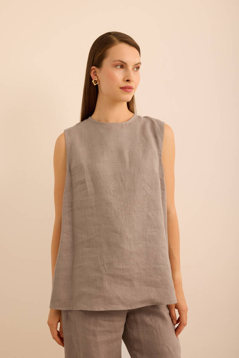 Vizon Önü Kup Detaylı Kolsuz Keten Bluz