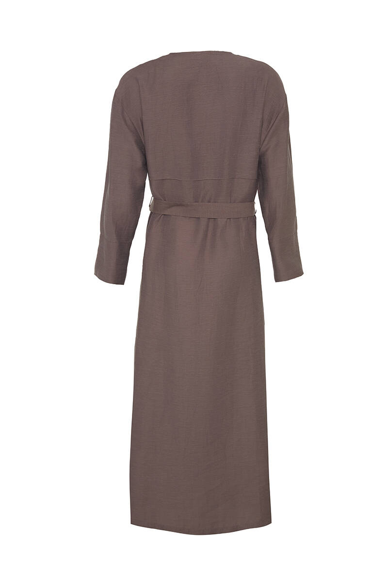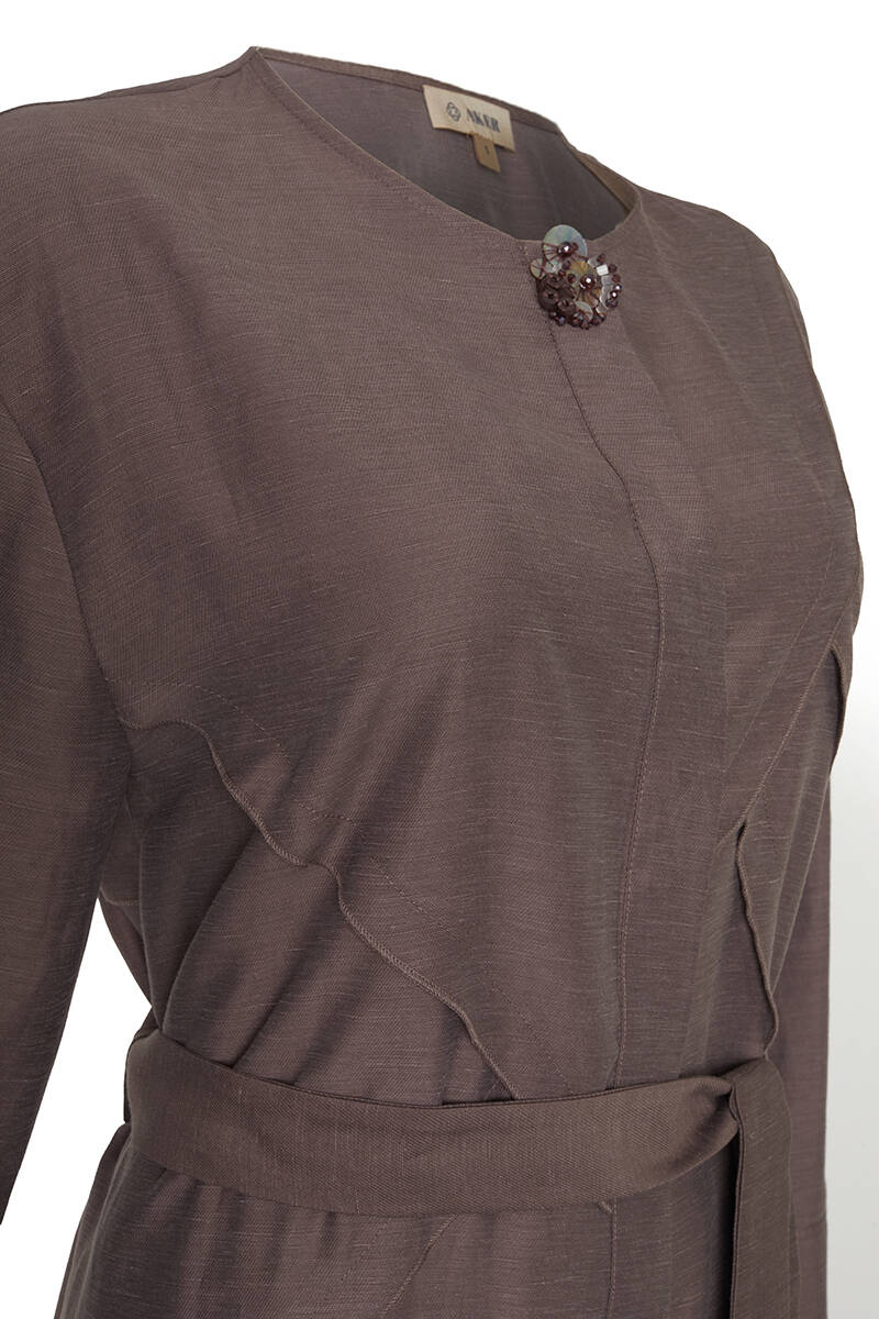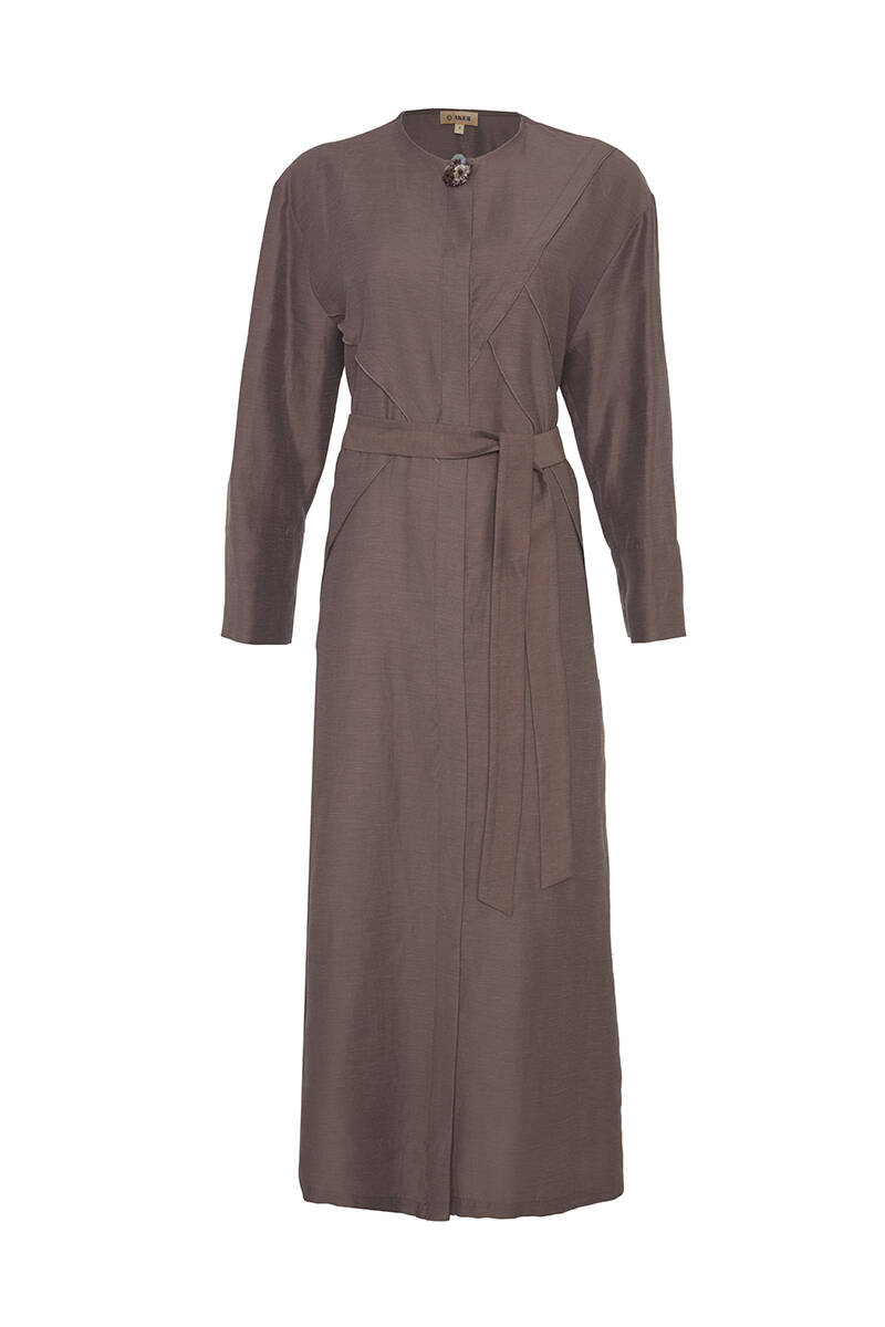 Vizon Dikiş Detaylı Keten Elbise