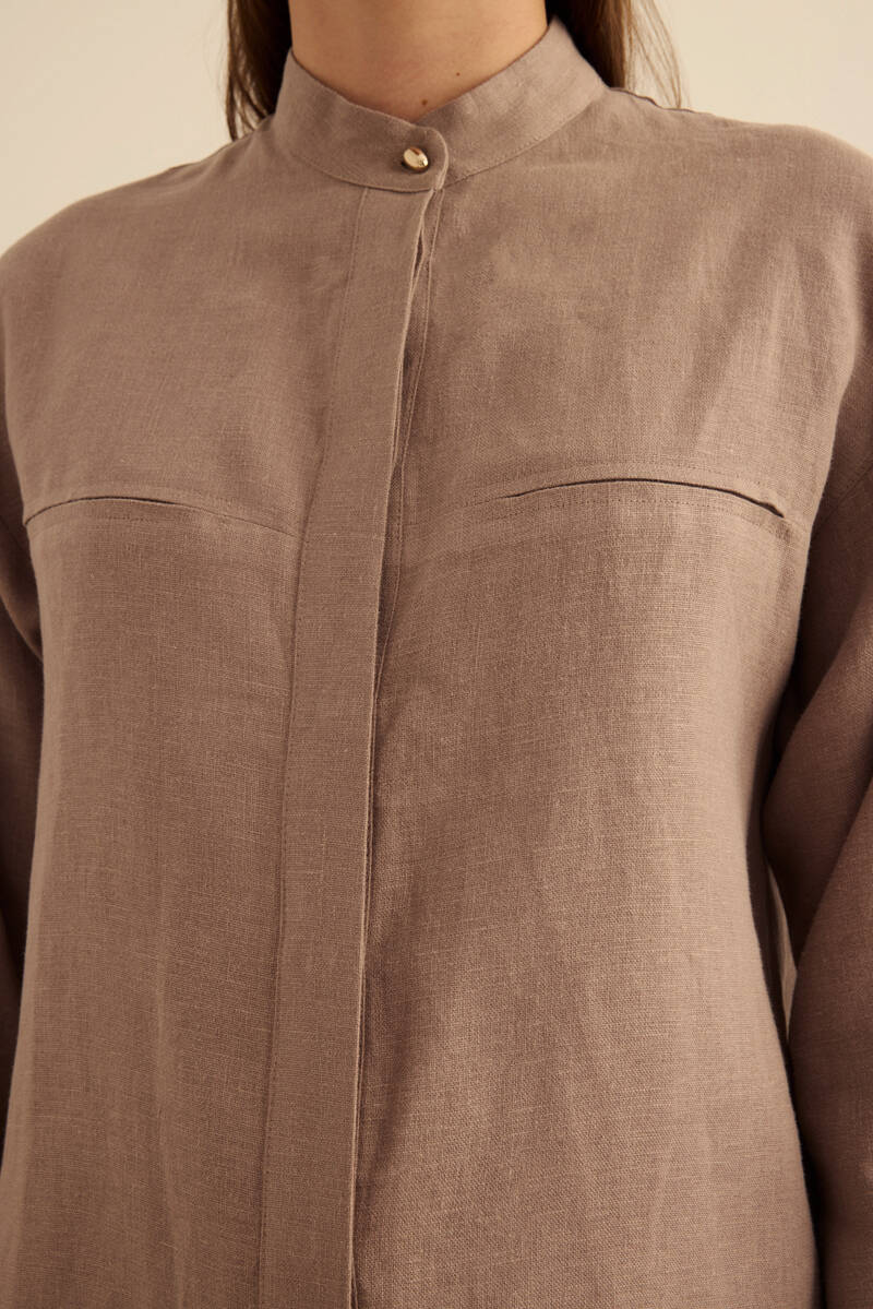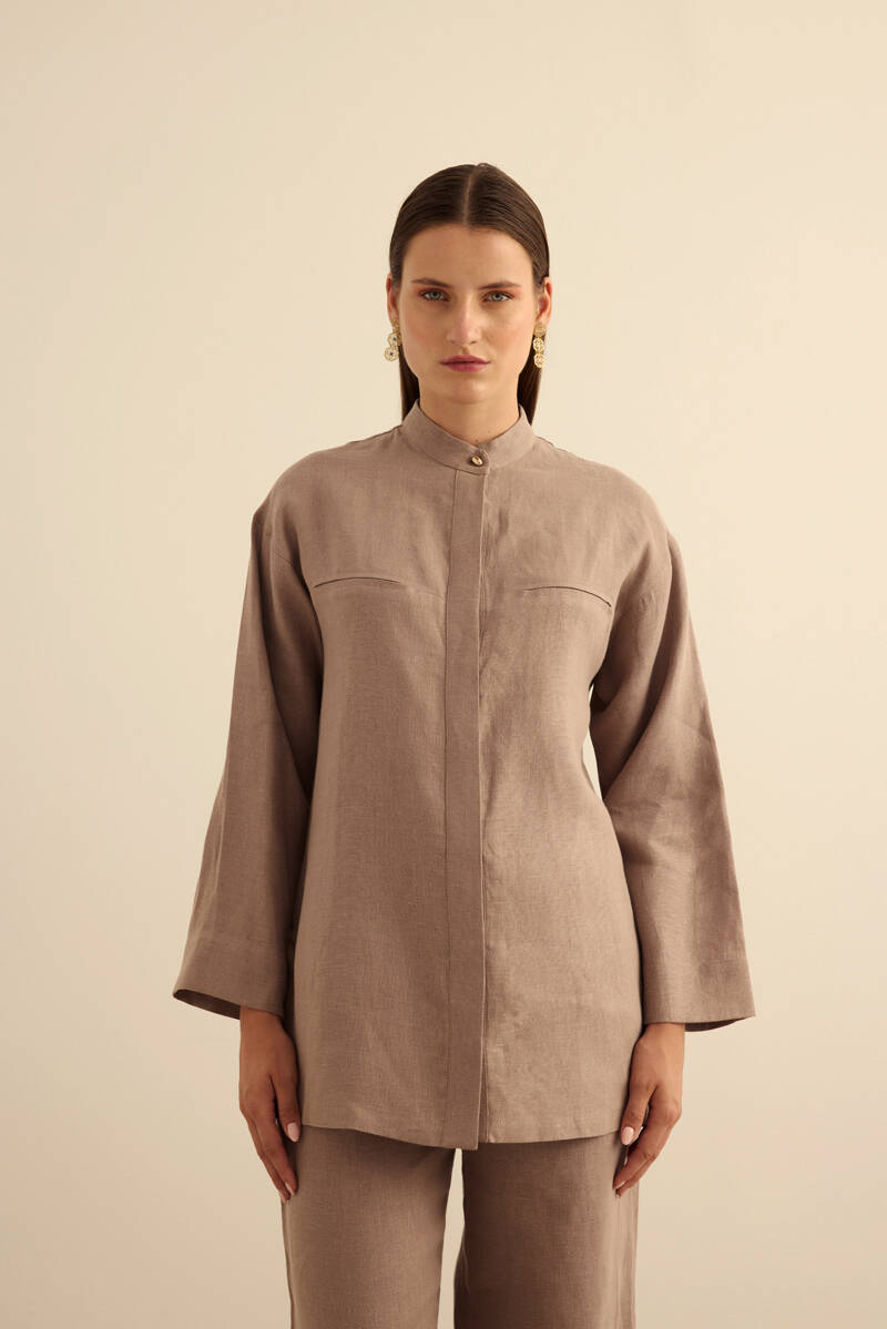 Bej Rahat Form Tencel Keten Tunik