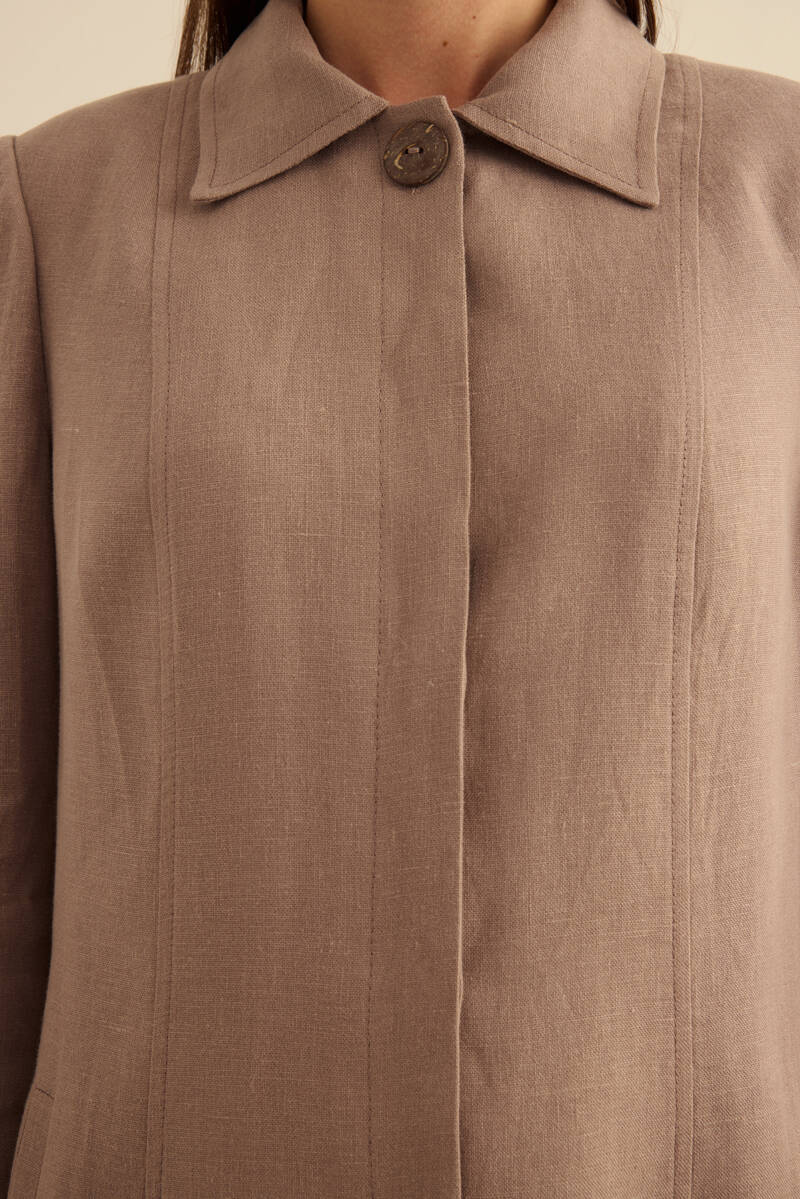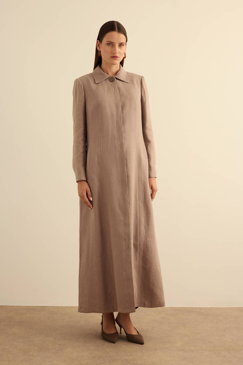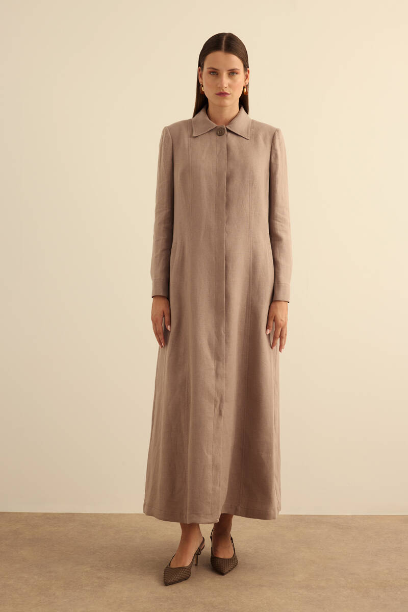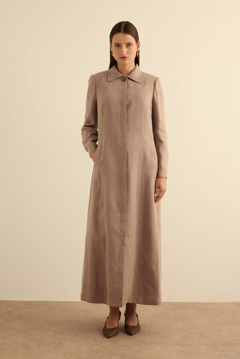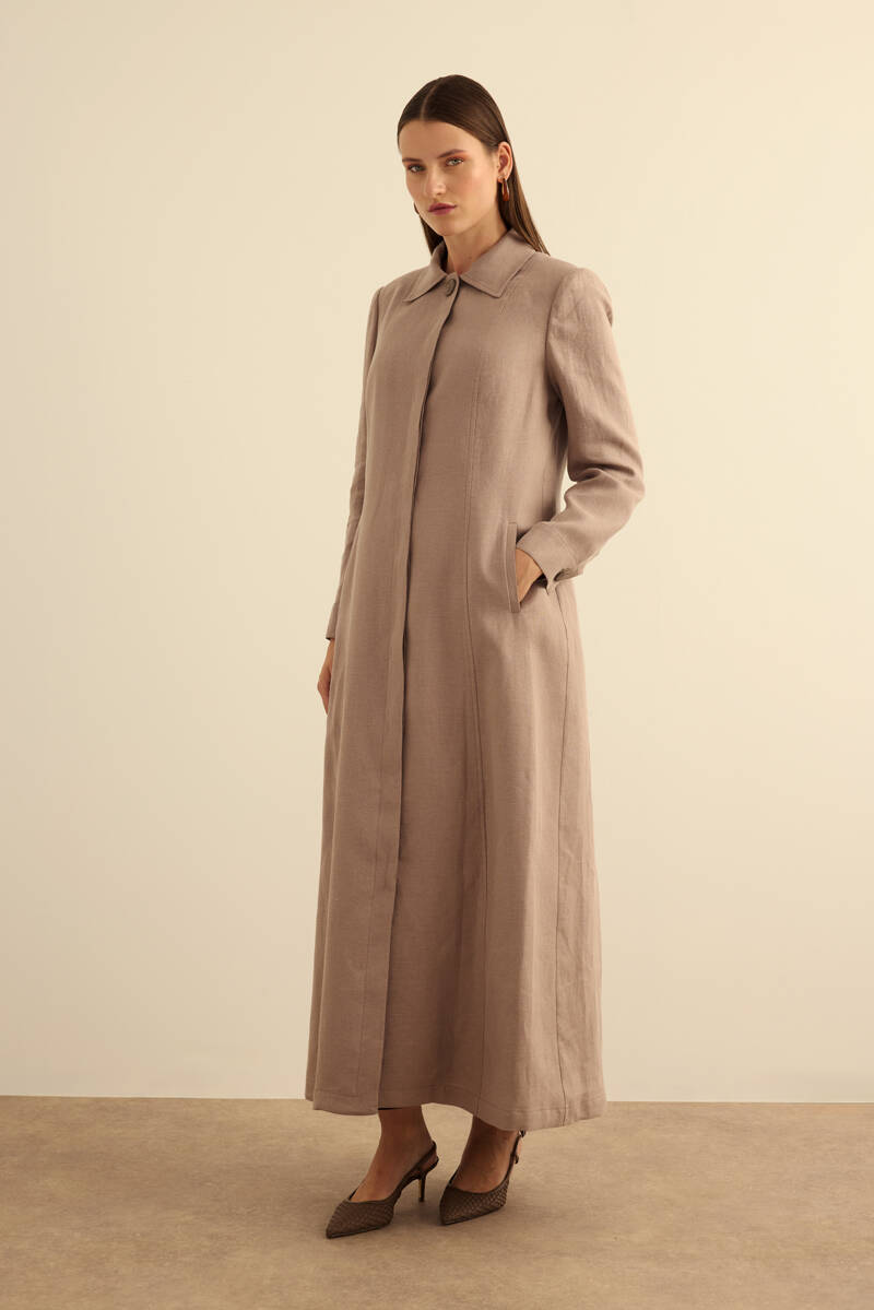 Haki Yanları Yırtmaçlı Keten Pardösü