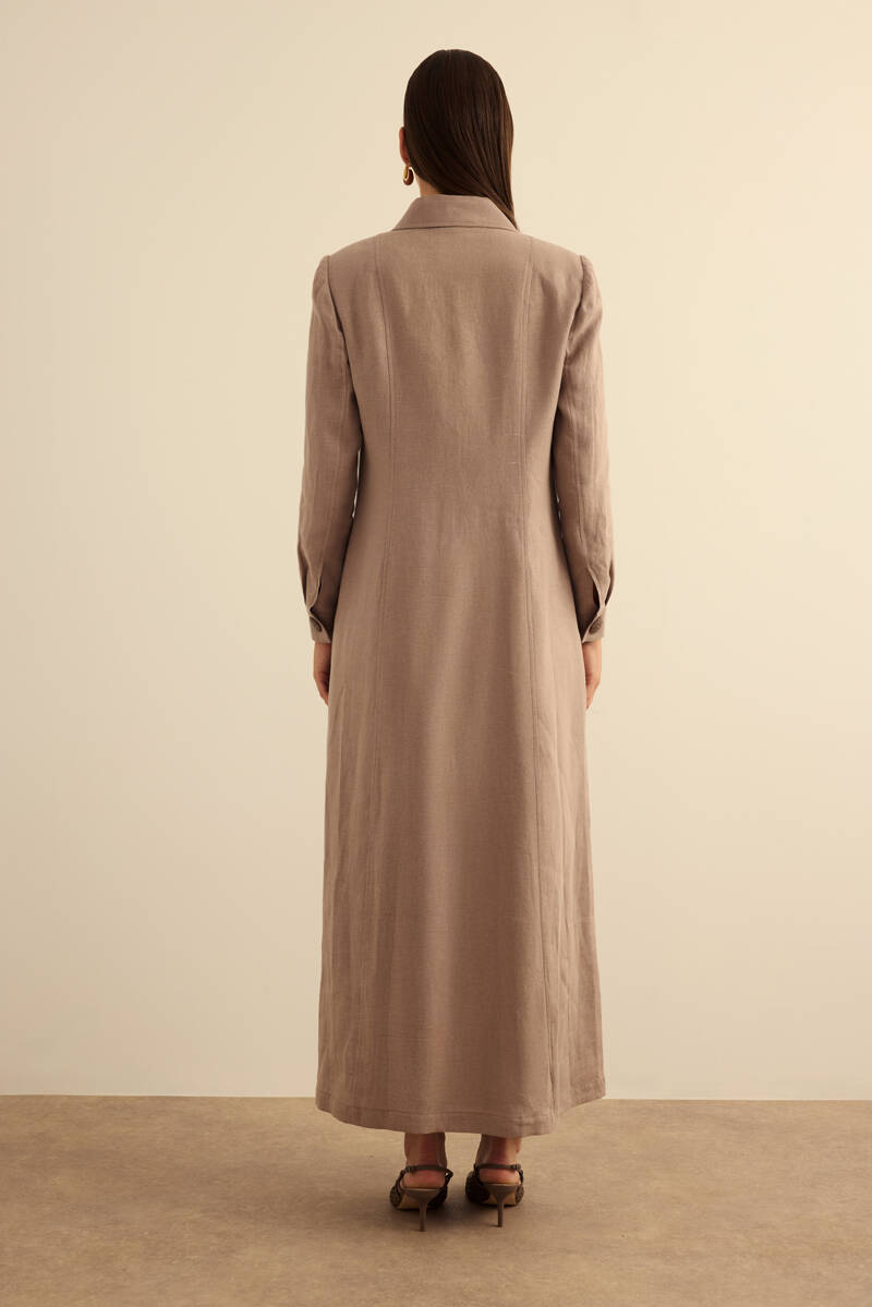 Bej Yanları Yırtmaçlı Keten Pardösü