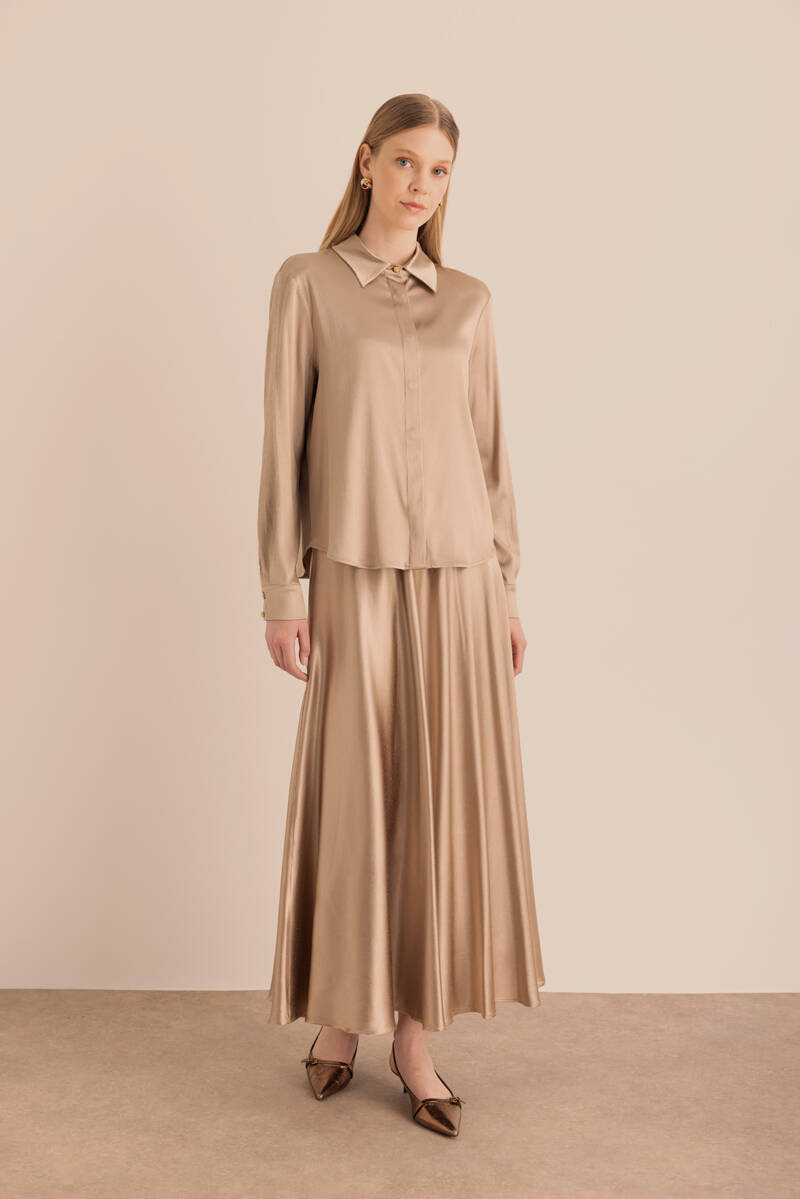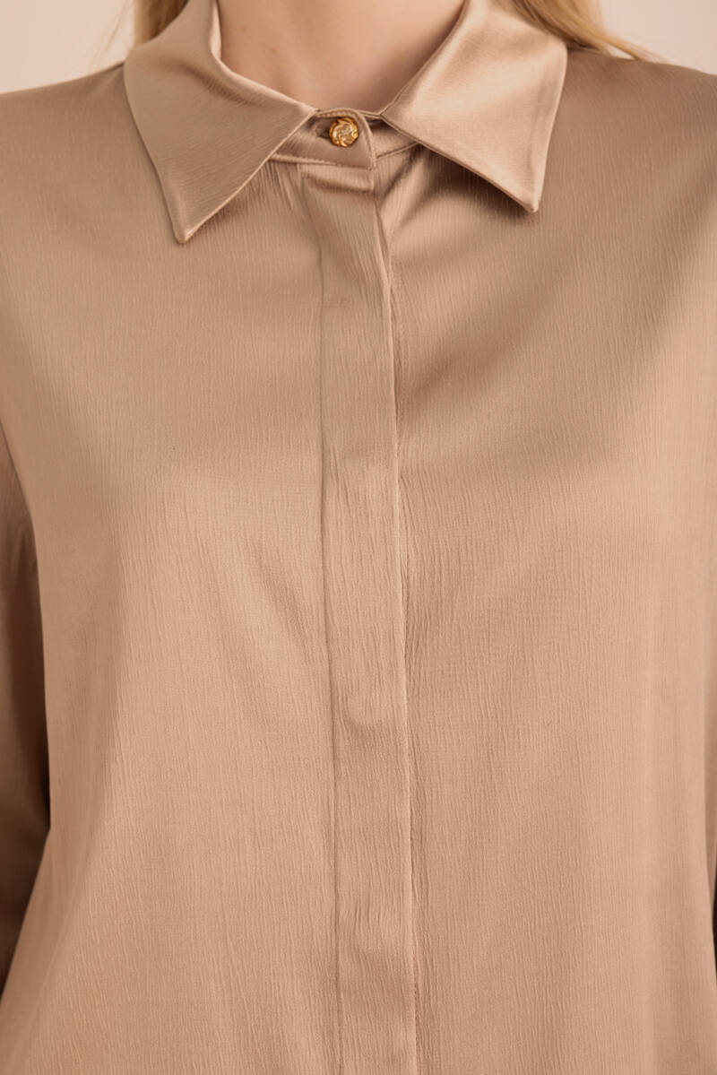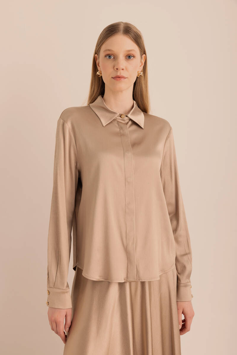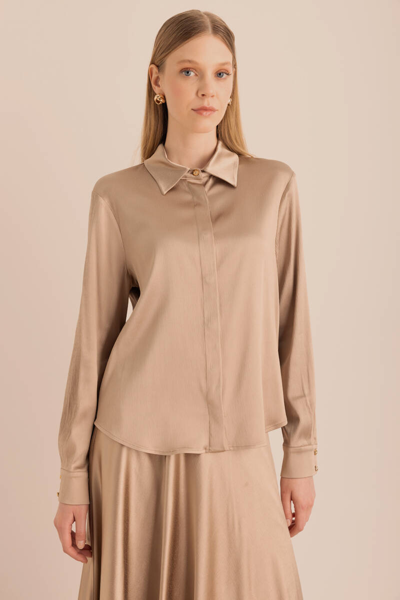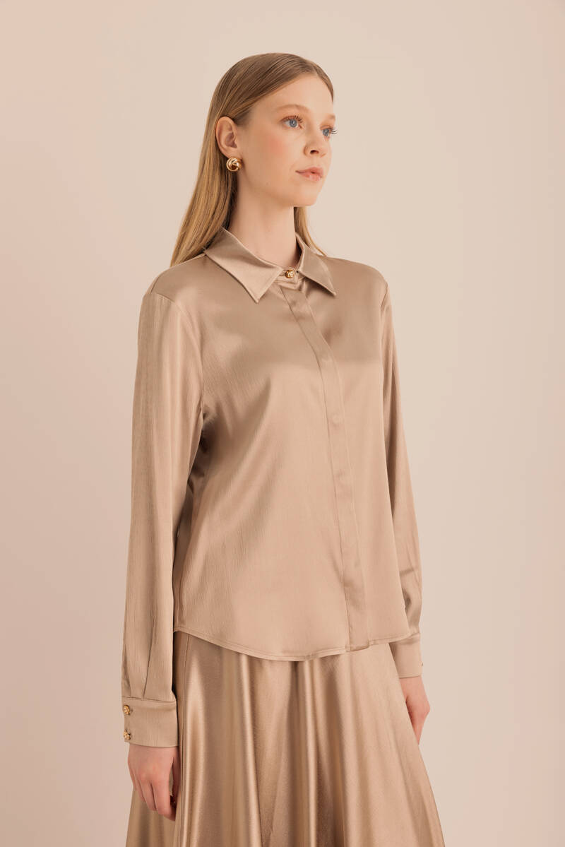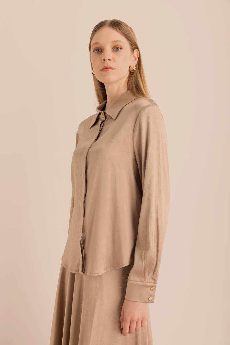 Vizon Saten Görünümlü Doğal İçerikli Gömlek