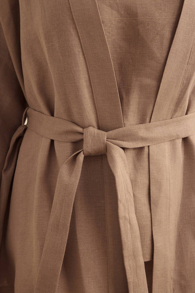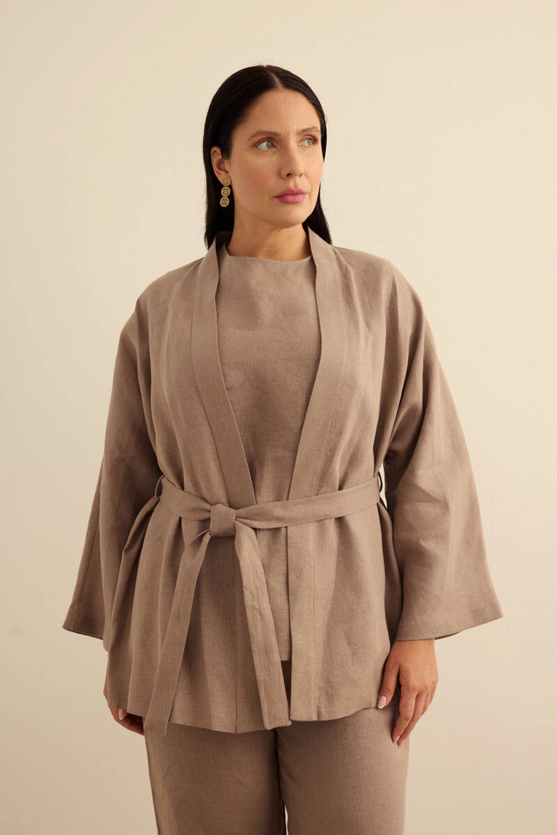 Taş Seyyar Kuşaklı Keten Kimono