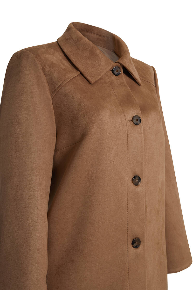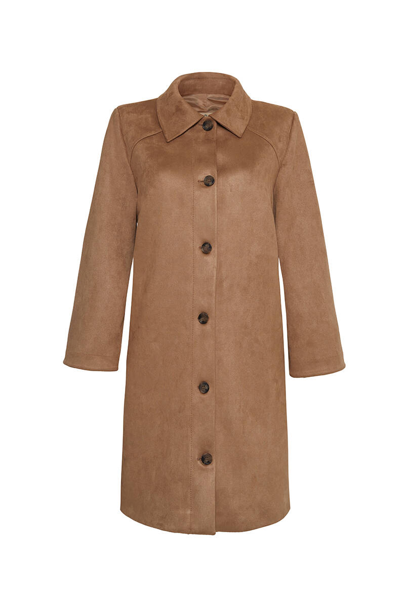 Ekru Yakası Taşlı Düğmeli Kap